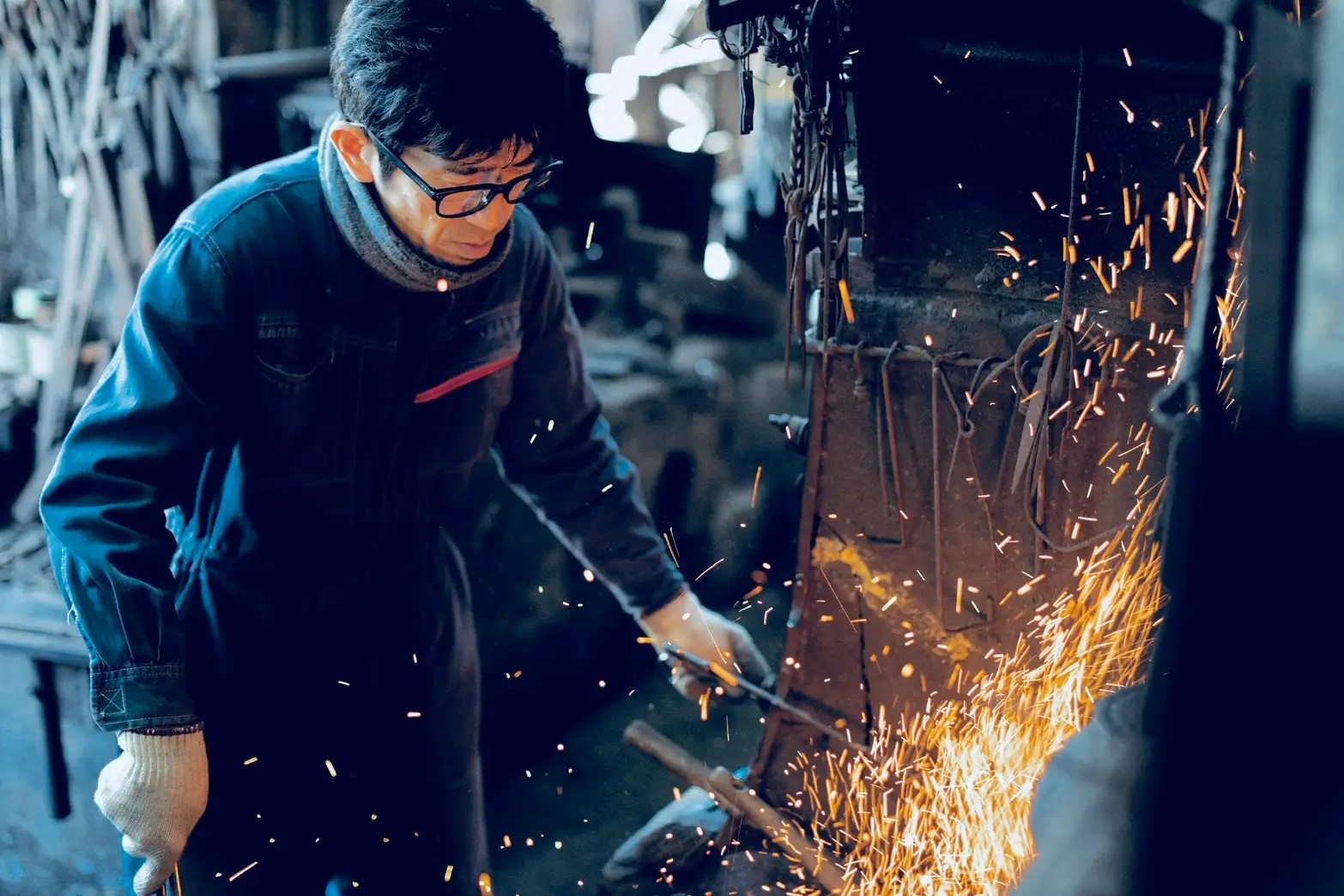 1970年、島根県生まれ。信州大学経済学部卒業後、都内の企業、地元の美術館勤務を経て本格的に鍛冶の道へ。江戸時代から続く技法を礎に、現代の空間に調和する鉄の作品を提案する。日本文化の担い手として、著名なデザイナーや文化人からもその手仕事が高く評価されており、伝統を次世代へと繋ぐ革新的な作品づくりに日々挑戦している。