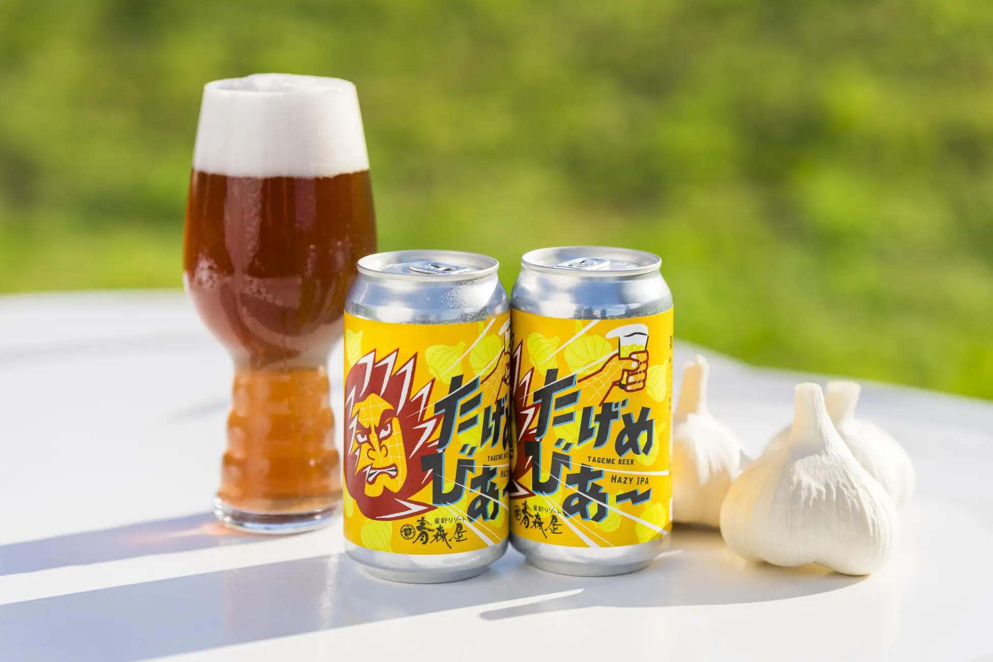 にんにくの旨みを引き立てるオリジナルビール「たげめびあー(*5)」を提供します。奥入瀬源流の恵みからビールをつくり、20年以上愛され続けている地元の醸造所「OIRASE Brewery」と共同開発したものです。フルーティで華やかなホップの香りと程よい苦味が心地よく、マイルドながら爽やかで、暑い夏にぴったりの味わいです。また、アルコールを控えている方や子供も一緒に楽しめるよう、にんにくの名産地・田子町のにんにくエキスを使用したコーラ「タッコーラ」も用意しています。