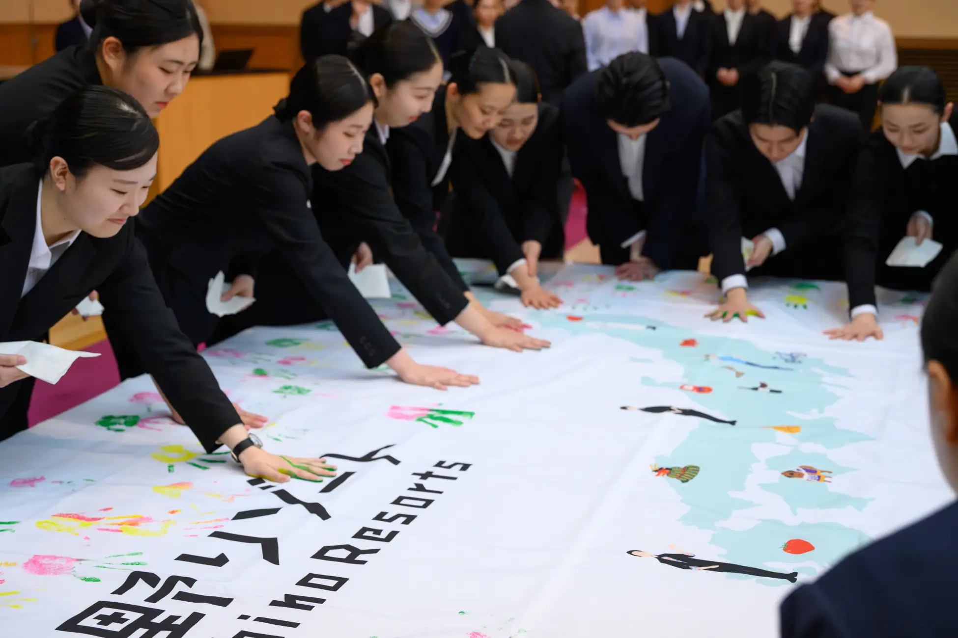 「旅を楽しくする」をテーマに国内外で75施設を運営する星野リゾートは、2026年4月3日に、北海道から沖縄まで全5拠点で「2026年春の入社式」を実施しました。今年は約300名の新入社員を迎え、代表の星野佳路の挨拶の後、会社と対等な関係を結ぶ恒例行事「契りの手形」にて、新入社員は未来への決意を込めた手形を力強く押しました。式の締めくくりには、青森県では青森ねぶた祭の「跳人」体験、沖縄県では「泡盛コンシェルジュ」など、各地域の魅力に触れる催しを開催。新入社員は旅の楽しさと醍醐味を肌で感じ、期待に胸を膨らませました。式後は計4日間の新入社員研修「Warm-up Camp」にて組織の価値観や文化を学び、全国の施設へ着任します。