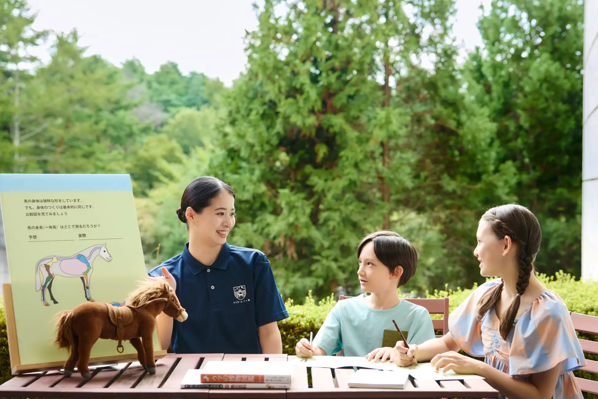 内容 :乗馬クラブでの体験、自由研究シート、筆記用具