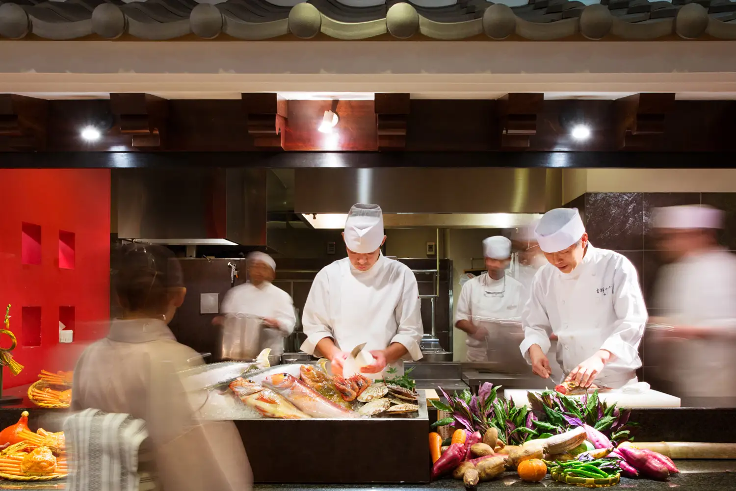 のどぐろ、甘海老、ズワイガニなどの海幸、能登牛、加賀野菜は、加賀会席と本格的な鉄板焼レストランでお召し上がりいただけます。