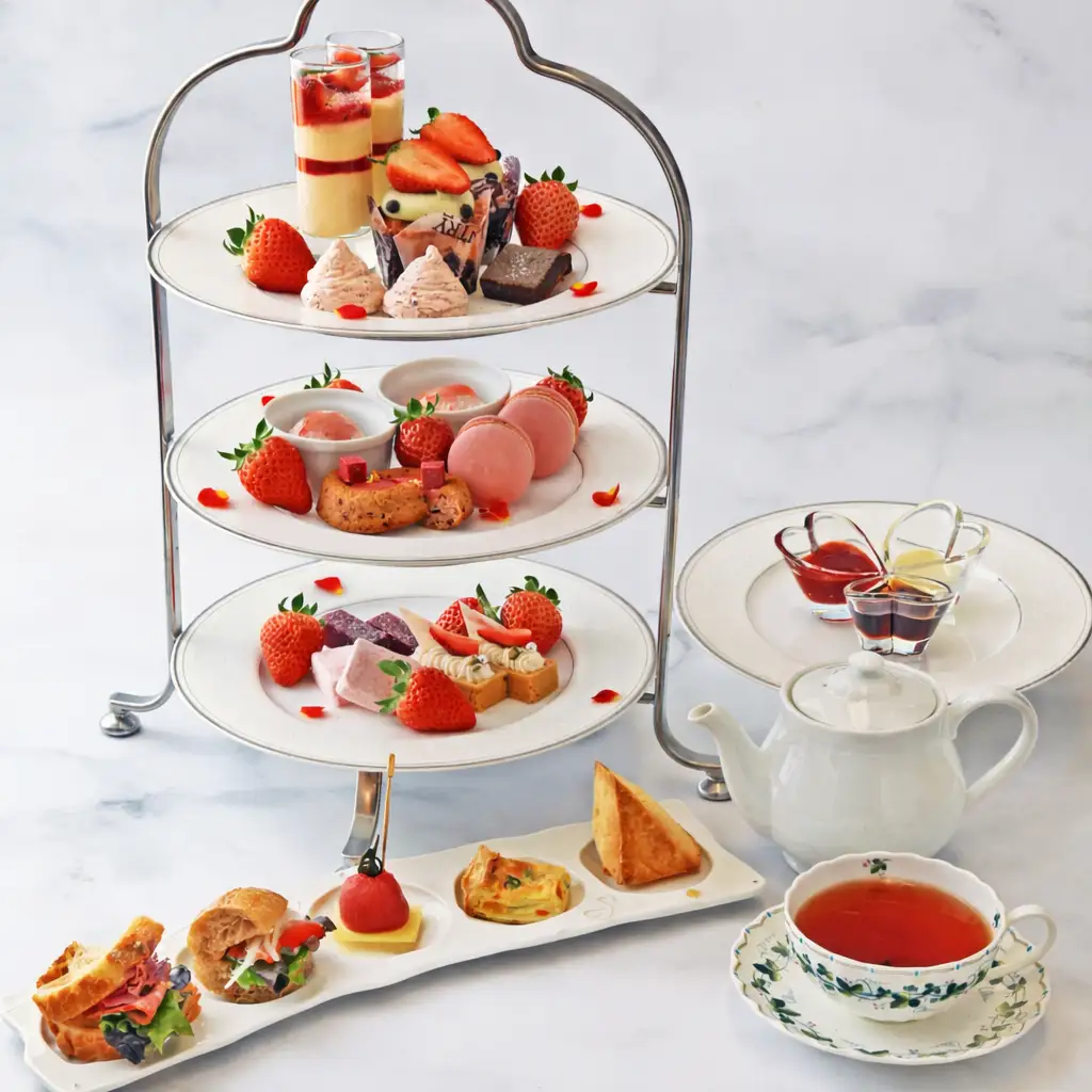 春限定で「ストロベリーアフタヌーンティ」(写真は2名セット ※内容が変更になる場合あり)も登場。