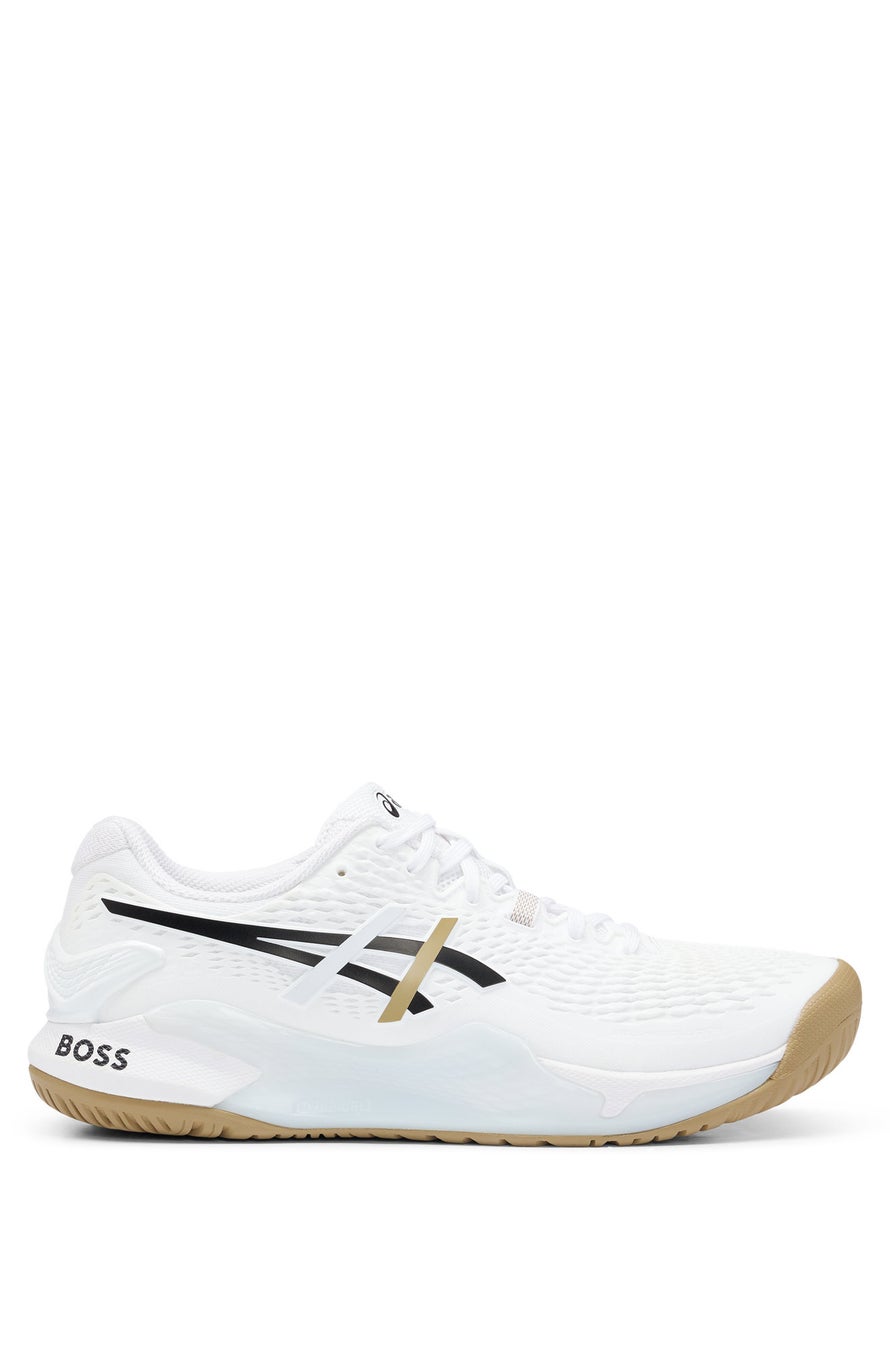 このカプセルコレクションは、ASICSとのコラボレーションにより誕生。マッテオ・ベレッティーニがコート上でデビューさせたGEL-RESOLUTION™ 9テニスシューズのエクスクルーシブデザインの登場により、コレクションが補完されます。時代を超越したホワイトを基調に、アッパーには特徴的なキャメルとブラックのアクセント、後部のアウトソールには大胆なBOSSのロゴがあしらわれています。このシューズには、アシックスのシグネチャーであるDYNAWALL™テクノロジーが採用され、ベースラインプレイヤー(後衛)の左右の動きをサポートしながら、アッパー内側の親指と小指部分にバンドを配した構造で足を快適に固定し、柔軟なアッパーが動きを最大限に引き出します。ASICS×BOSS×Matteo Berrettiniのコラボレーションは、昨年の2023年6月と8月に発売され好評を博した同スニーカーのカラーバリエーションに続く、第3弾となります。