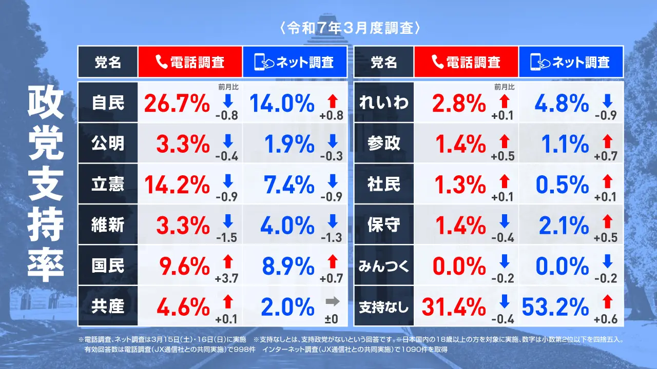 2025年3月15日・16日調査の政党支持率
