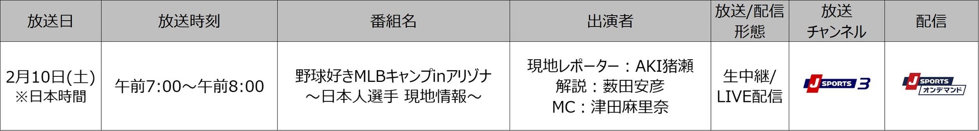 ■J SPORTSオンデマンド「MLBキャンプ特集」https://jod.jsports.co.jp/baseball/mlbcamp