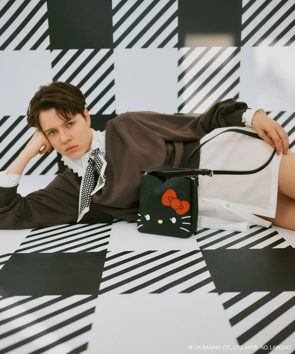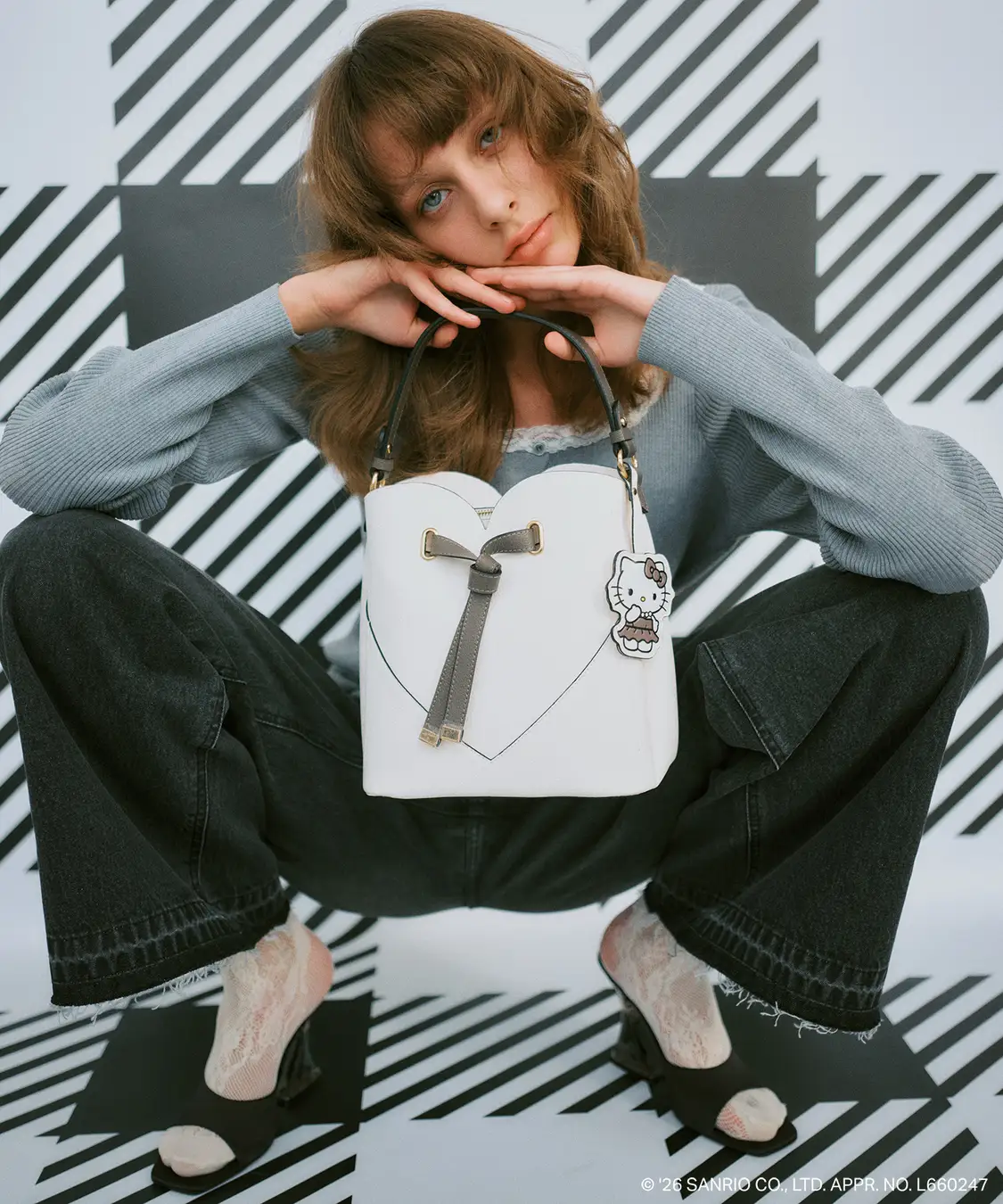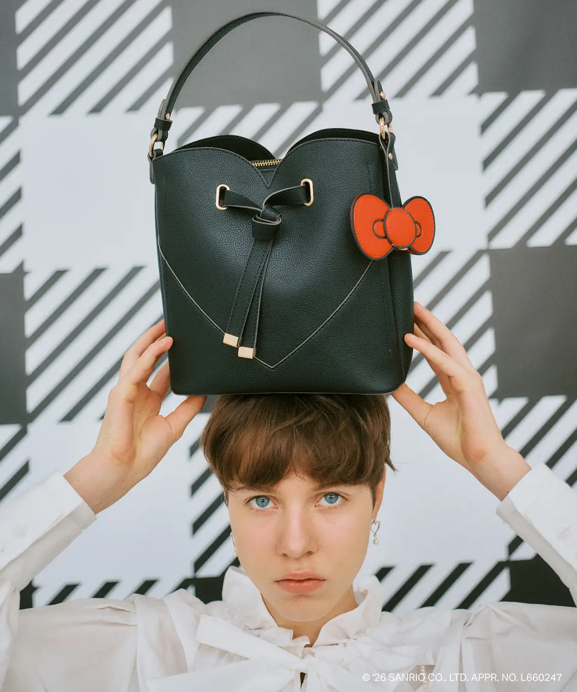 前面は定番のハートカットバッグミニ、背面には「ハローキティ」のフェイスを大胆にデザイン。