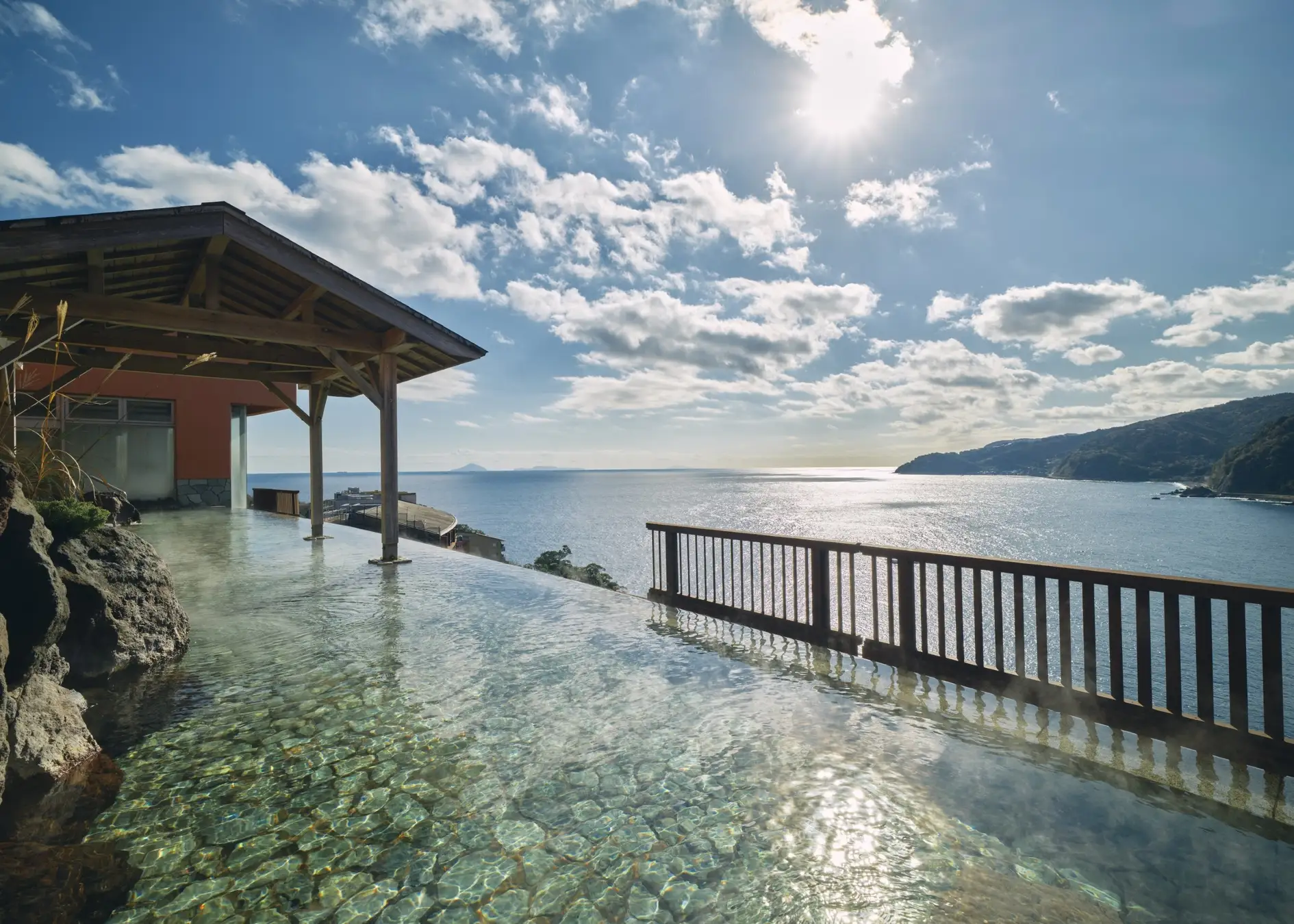 空と海、湯舟の一体感を満喫できる眺望抜群の大露天風呂