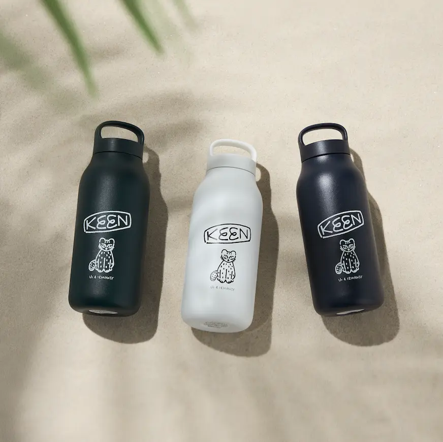 長場雄氏によるKEENのロゴとイリオモテヤマネコのデザインが目を引くウォーターボトル。Us 4 IRIOMOTEが提唱する「エシカルな旅」にも自然となじむアイテムです。気軽に持ち歩けるので、旅はもちろん日常でも。いつもの選択を少し変えてみる。それが、小さなアクションにもつながります。