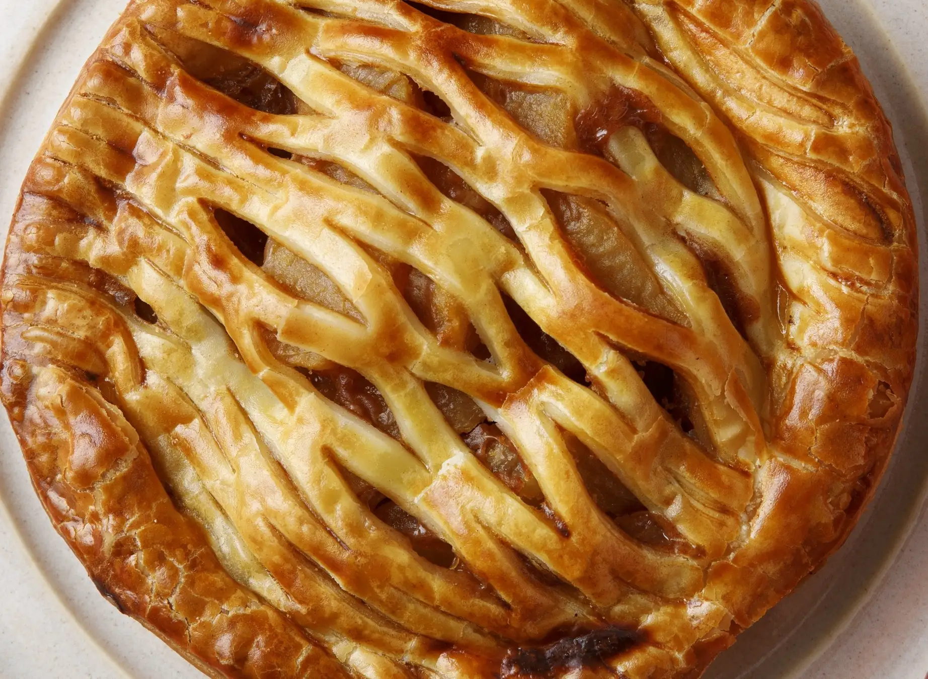 表面には、さっくりとした食感の折りパイ生地を使用。網目状に仕上げることで、焼き上がりの香ばしさが増し、バターとシナモンの風味をより一層感じられるよう工夫しています。