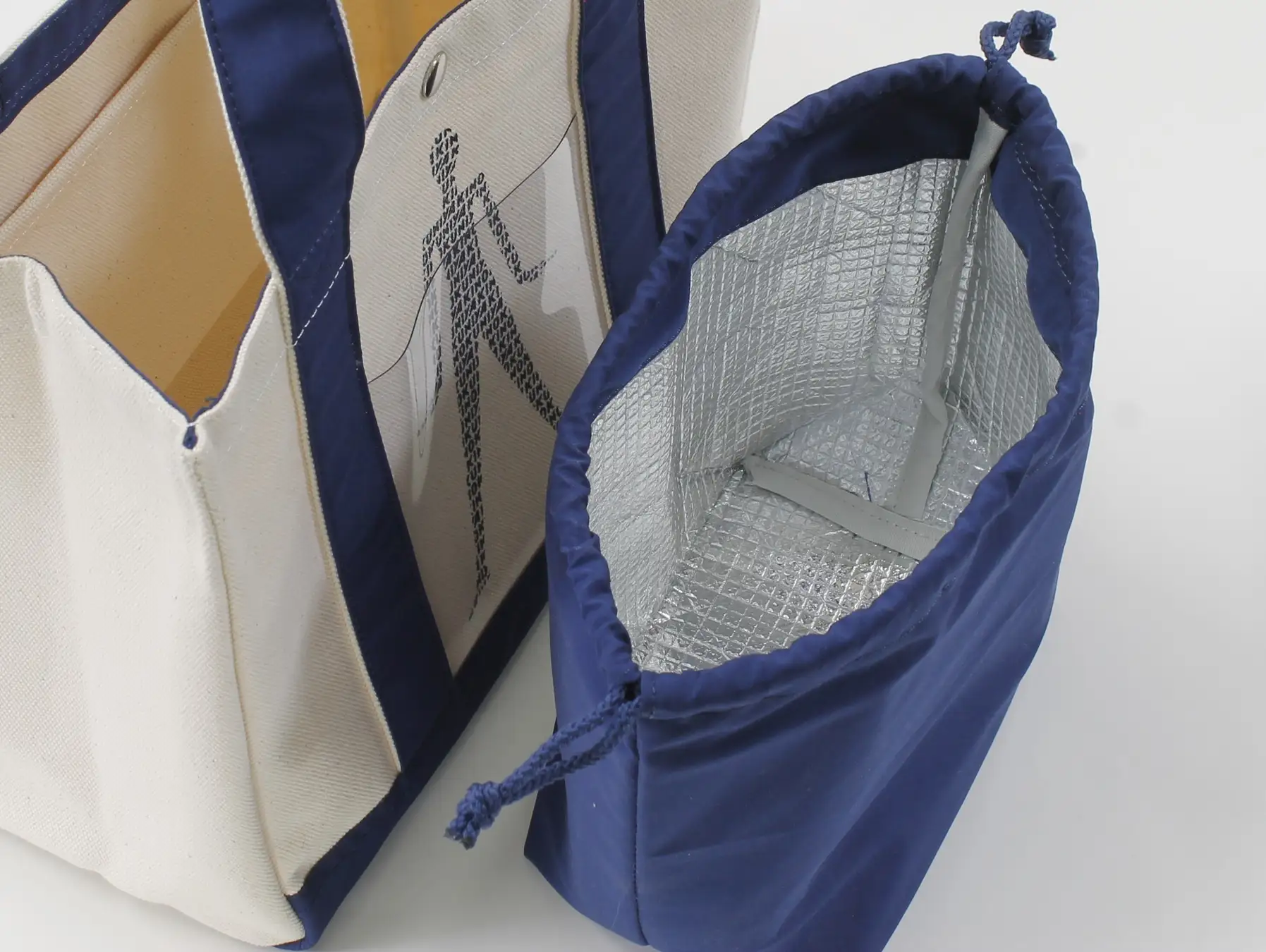 付属の保冷巾着は内側にラミネート加工を施し、ランチボックスなどを入れて保冷しながら持ち運べます。巾着タイプで出し入れしやすく、毎日のランチやちょっとしたお出かけにも使いやすい、実用性の高いアイテムです。