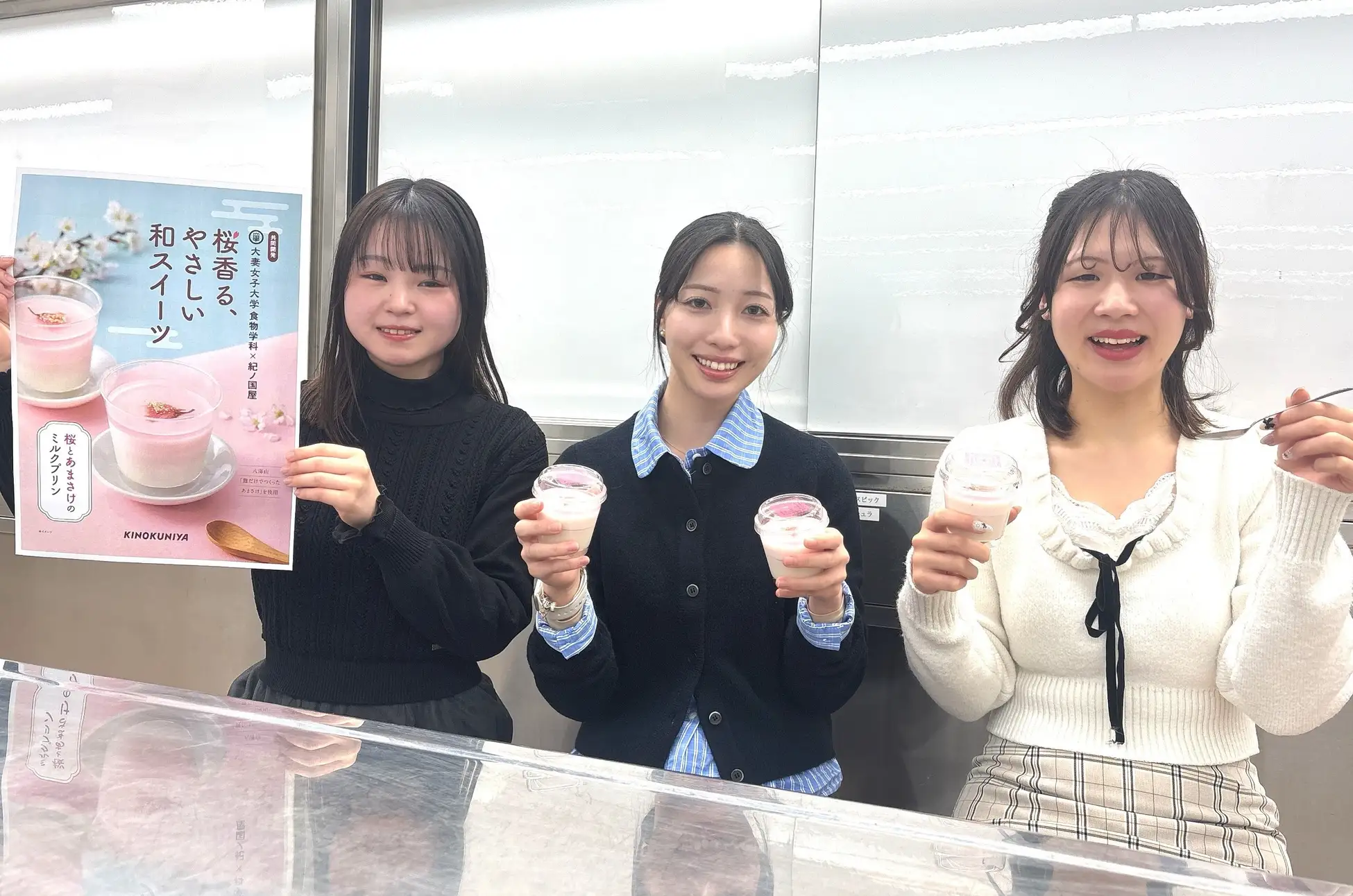 大妻女子大学食物学科の学生が企画・設計した「桜とあまさけのミルクプリン」を3月1日より発売
