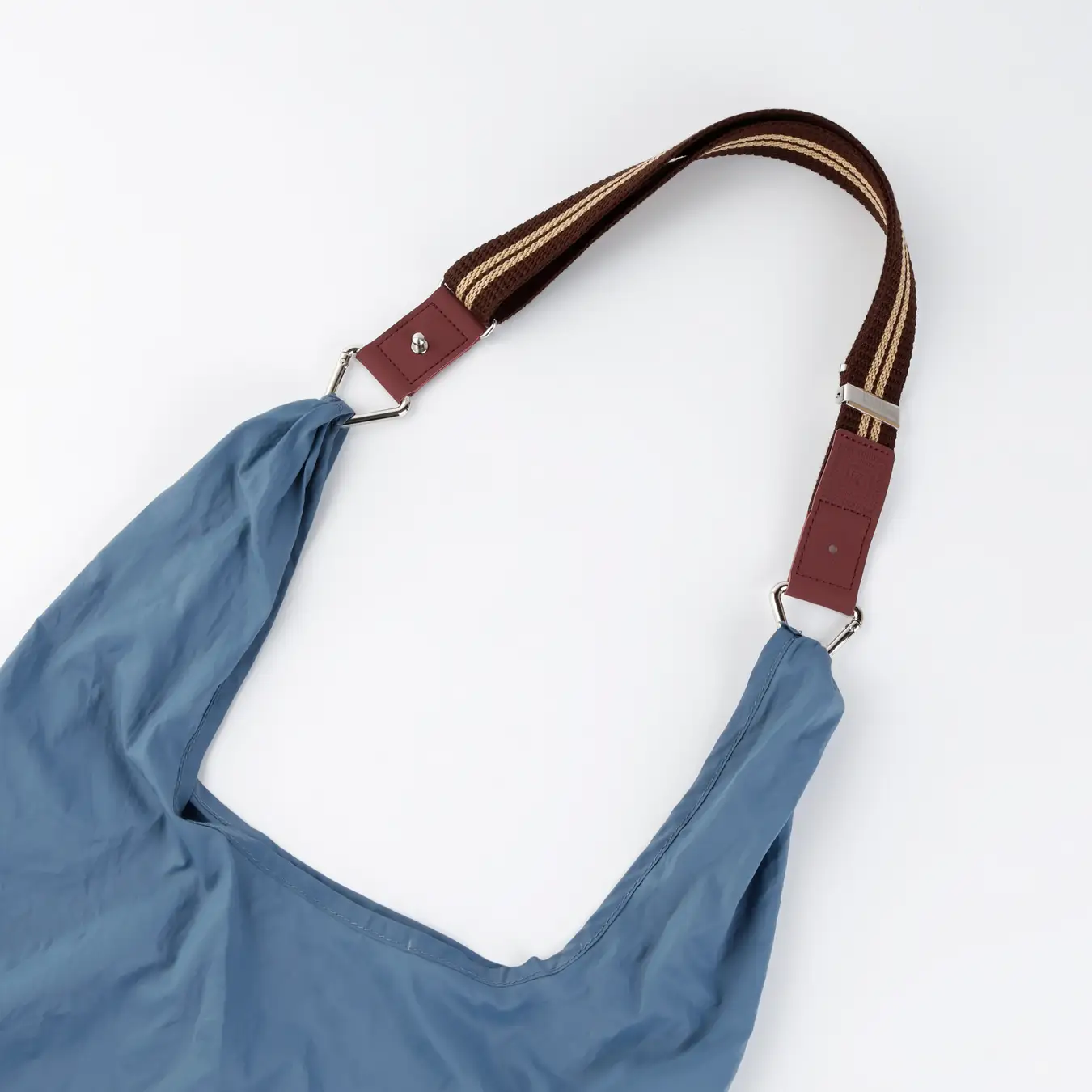 お手持ちのバッグに「カラビナ付き延長ショルダー」をギボシ(金具)で留めれば、機能性をプラスしながら、洗練された印象に。使わないときもそのまま装着しておけるため、アクセサリー感覚でスマートに携帯できます。実用性とデザイン性を兼ね備えたアイテムです。