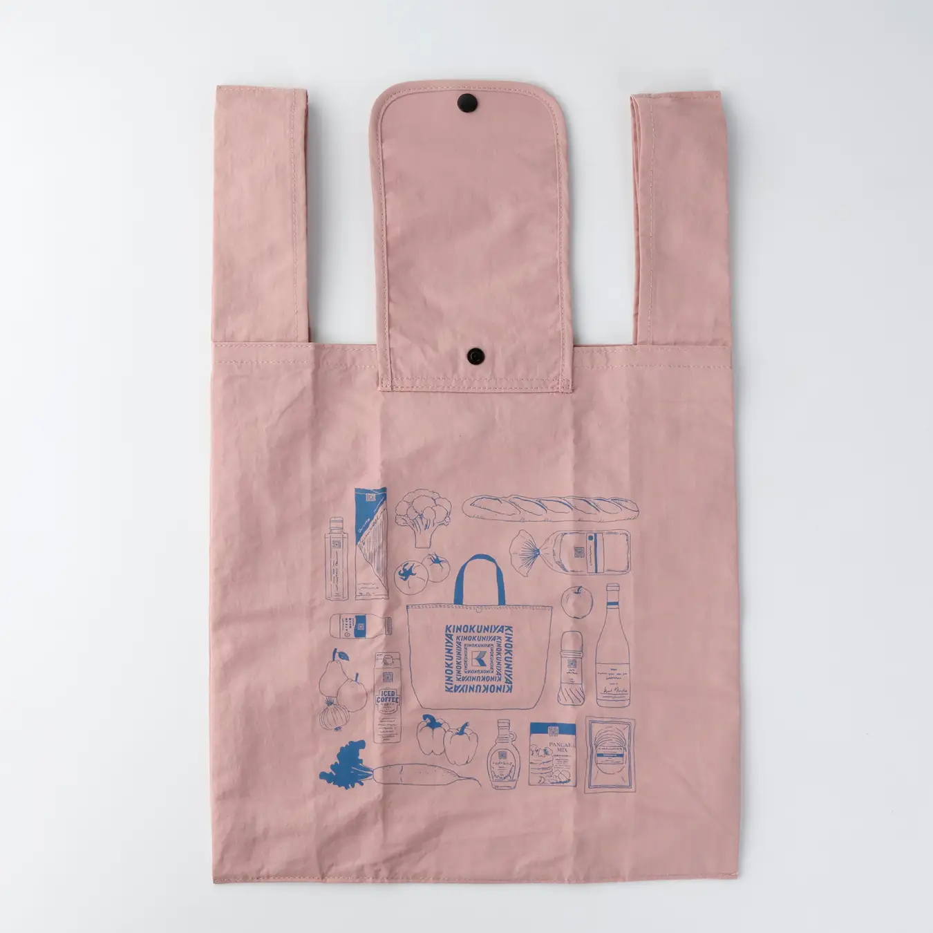 片面には、パスタやパン、果物など、紀ノ国屋らしい商品をモチーフにしたイラストをあしらいました。春の気分を高めるやさしいカラーと、遊び心のあるイラストが、いつものお買い物をより楽しい時間にしてくれます。