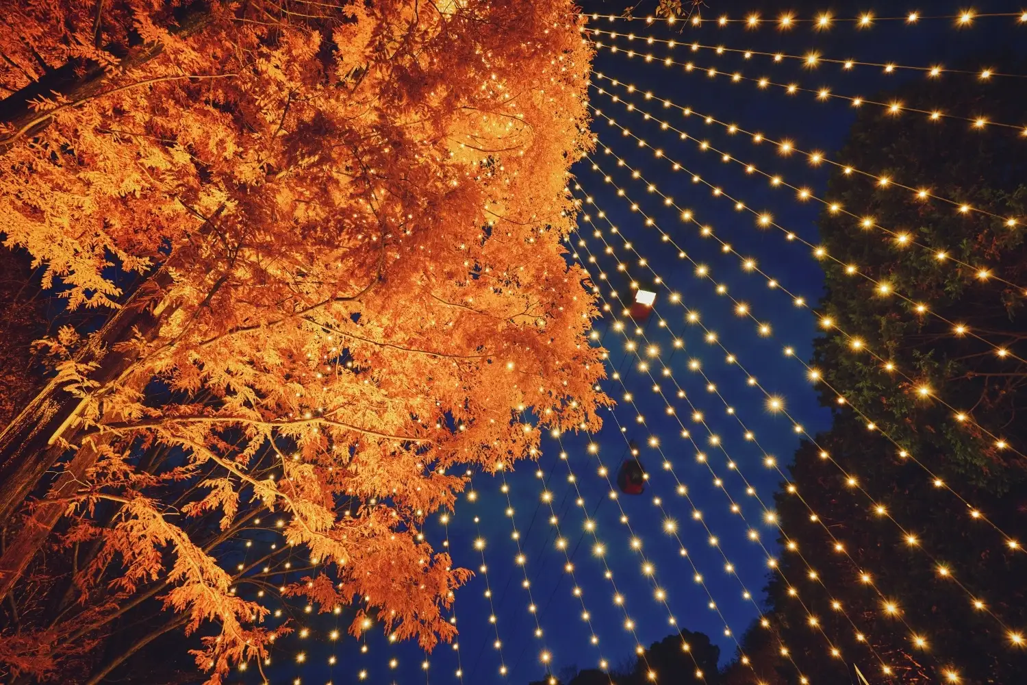 1.ツリーの真下は煌めくメタセコイアの葉の織りなす幻想的な空間