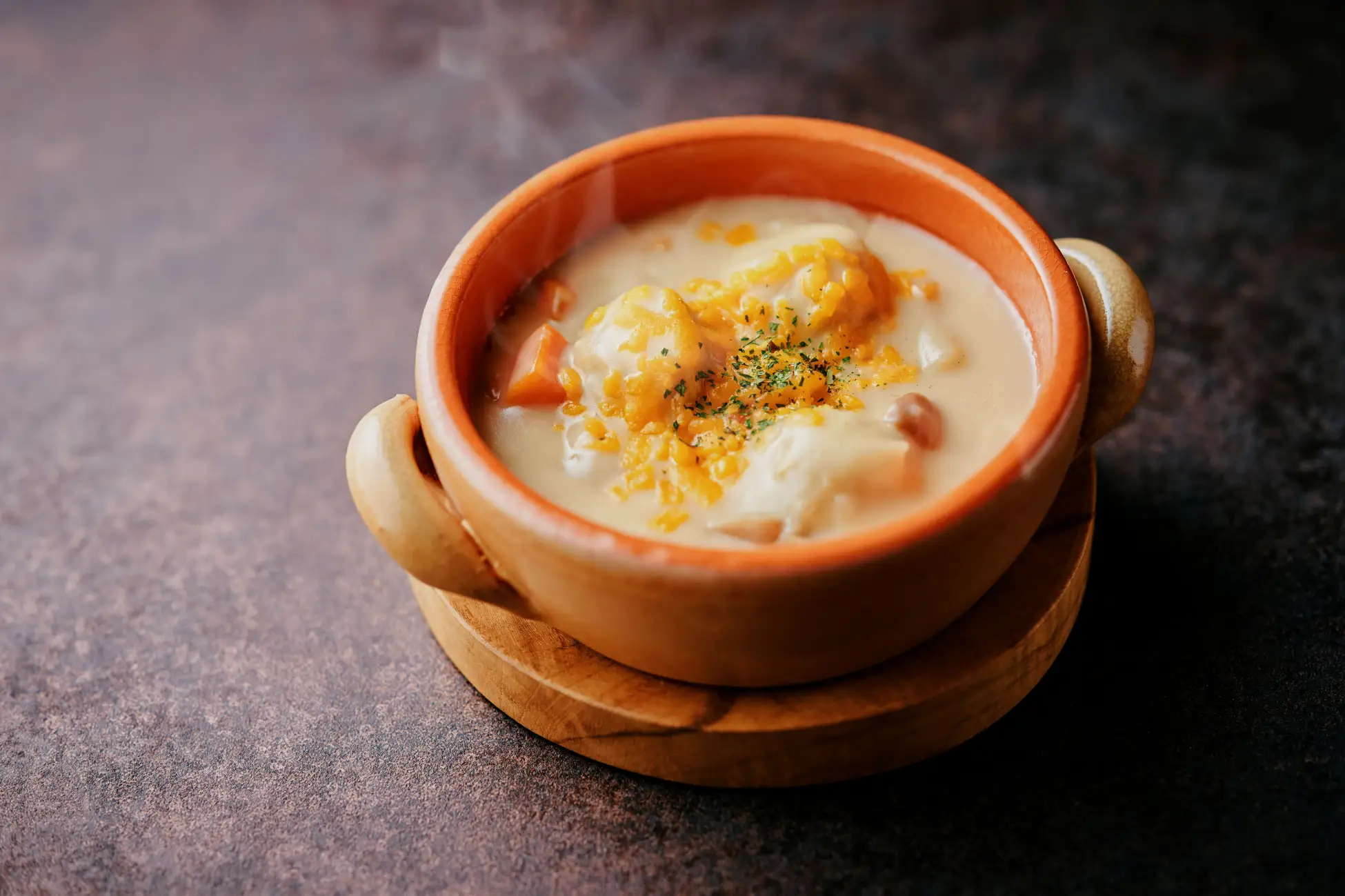 チキンミートボールがゴロっと入った、まろやか、クリーミーな特製クリームシチューです