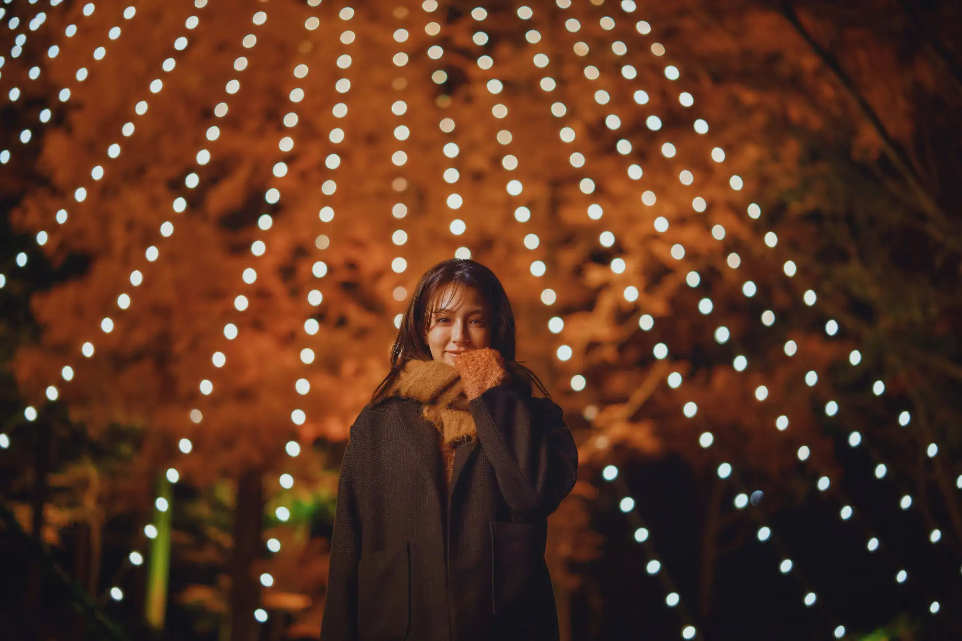 神戸布引ハーブ園の森の中にたたずむ高さ25mのメタセコイアを約1,600球の電球でクリスマスツリーに仕立てます 圧倒的な存在感のツリーと周辺にあるメタセコイアなどの木々もライトアップし、幻想的なクリスマス空間が誕生します