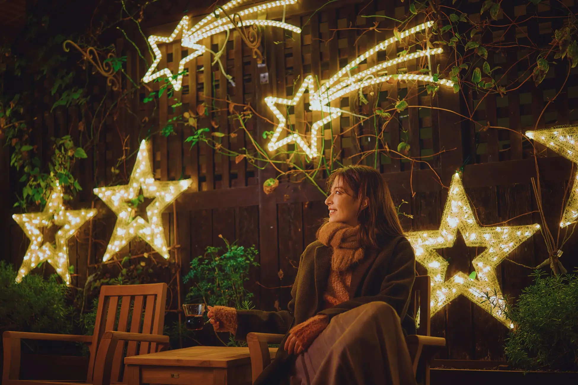 グリューワインやドリンクを片手に過ごせる屋内スペースもあり、あたたかなイルミネーションに包まれながら、楽しいひとときをお過ごしいただけます
