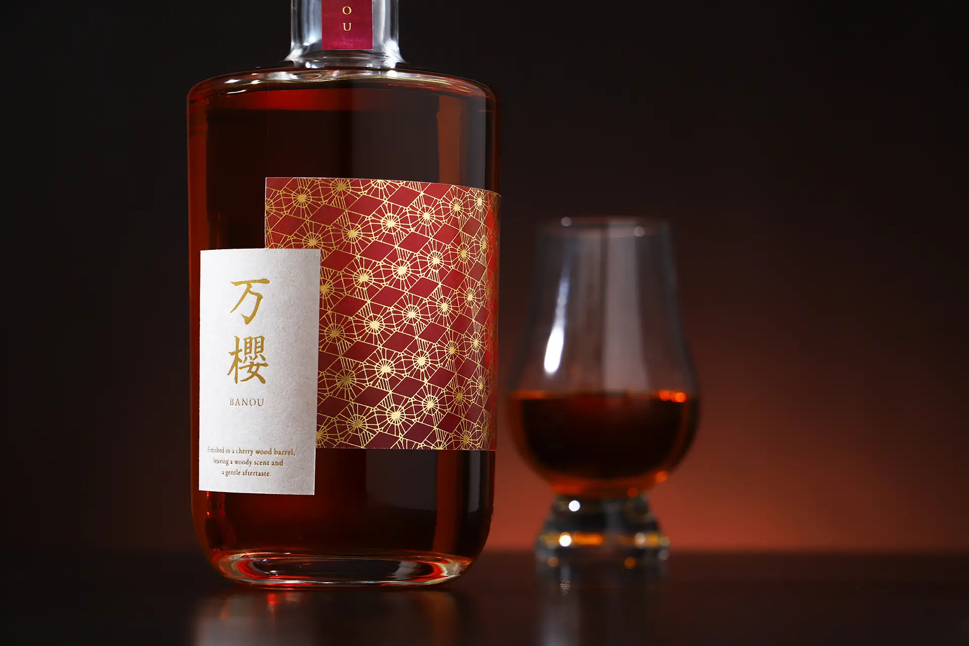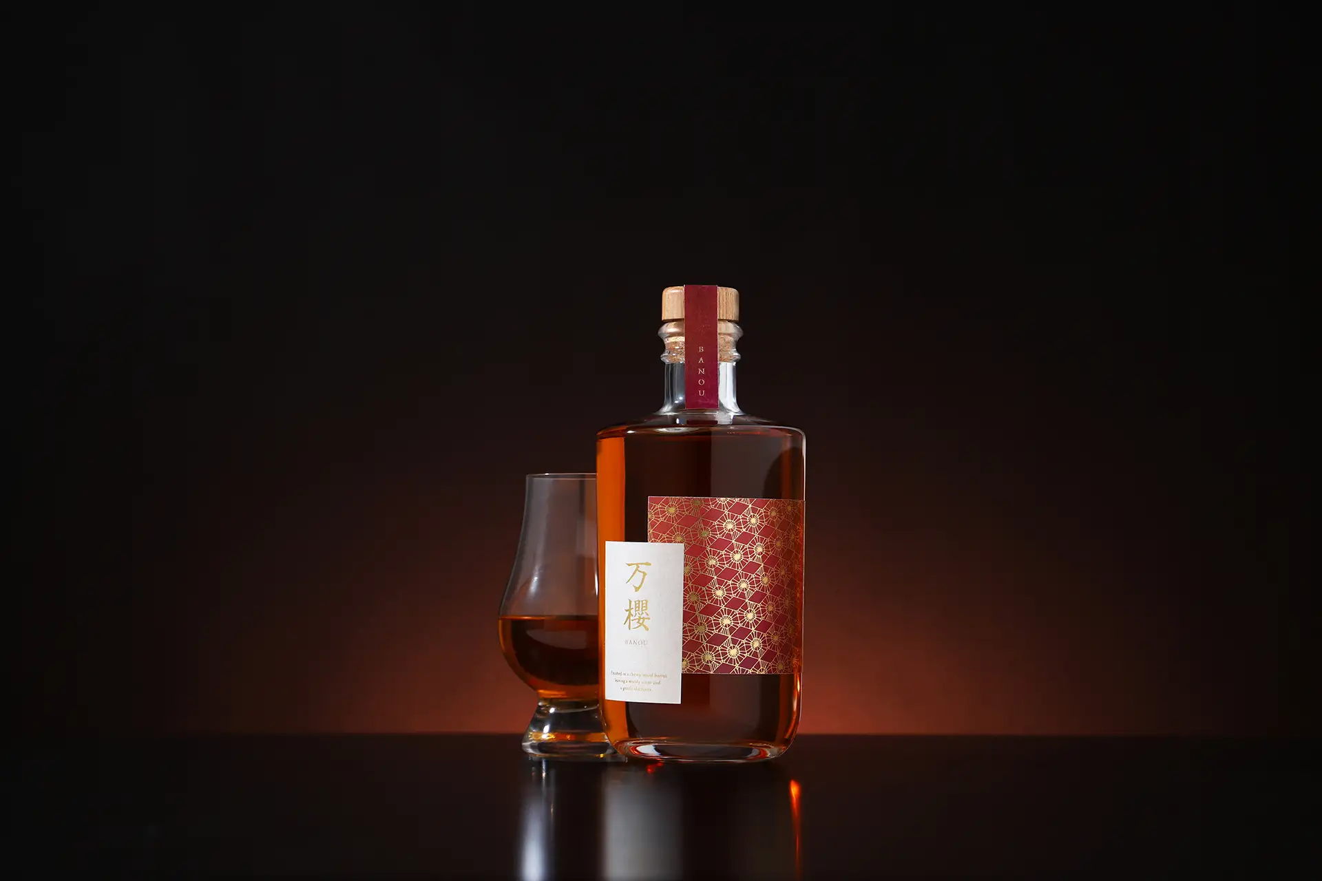 「万櫻 -banou-」は、桜樽で仕込んだモルトウイスキーです。洋酒の代表格「ウイスキー」を日本らしく表現するために、注目したのは日本が誇る花「桜」でした。ノンピーテッドのモルトウイスキーを3年にわたるオーク樽の熟成後に、吉野杉の樽で清々しいウッディ感を加えて、最後に桜樽で熟成することで、華やかな香りと柔らかく甘やかな香りの余韻を残します。一口飲めば桜並木が眼前に広がる、和洋折衷な体験をご堪能ください。