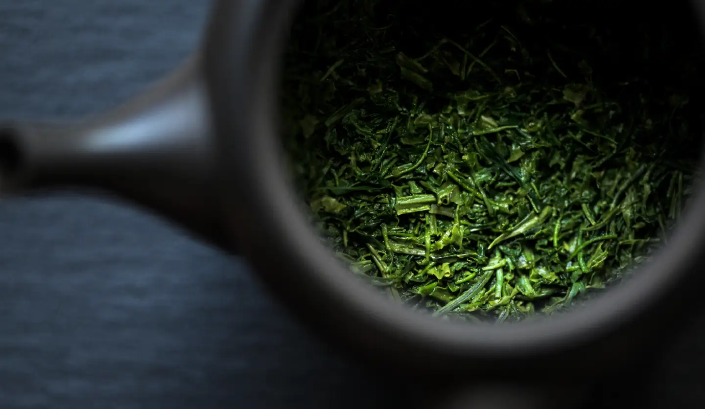 抹茶をたっぷりと入れるだけでなく、ベースとなるアルコール自体にも緑茶の茶葉を漬け込む「2段製法」を採用しました。漬け込む茶葉は、力強い旨みと凛とした香りが特徴の鹿児島県産「やぶきた」茶葉です。漬け込むことで、お酒の中に茶葉本来のしっかりとした骨格が生まれ、後味に心地よい余韻が生まれました。