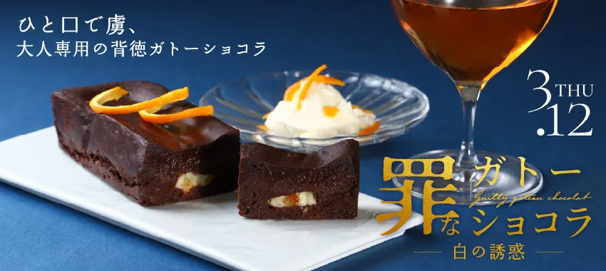 チーズとオレンジで背徳感をアップしたお酒に合うガトーショコラ「罪なガトーショコラ -白の誘惑-」を販売開始