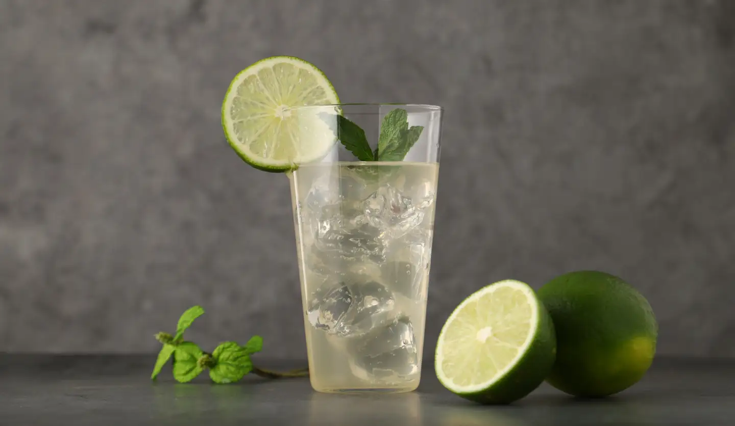 原料には、国内自給率が1%未満とされる希少な愛媛県上島町岩城島産のライムを贅沢に使用しています。瀬戸内の太陽を浴びて育った国産ライム特有の、雑味のないフレッシュな酸味が特徴です。果汁だけでなく香りが凝縮されたエキスも配合しており、炭酸で割っても香りの輪郭が崩れず、脳に響くようなクリアな余韻を最後まで楽しむことができます。