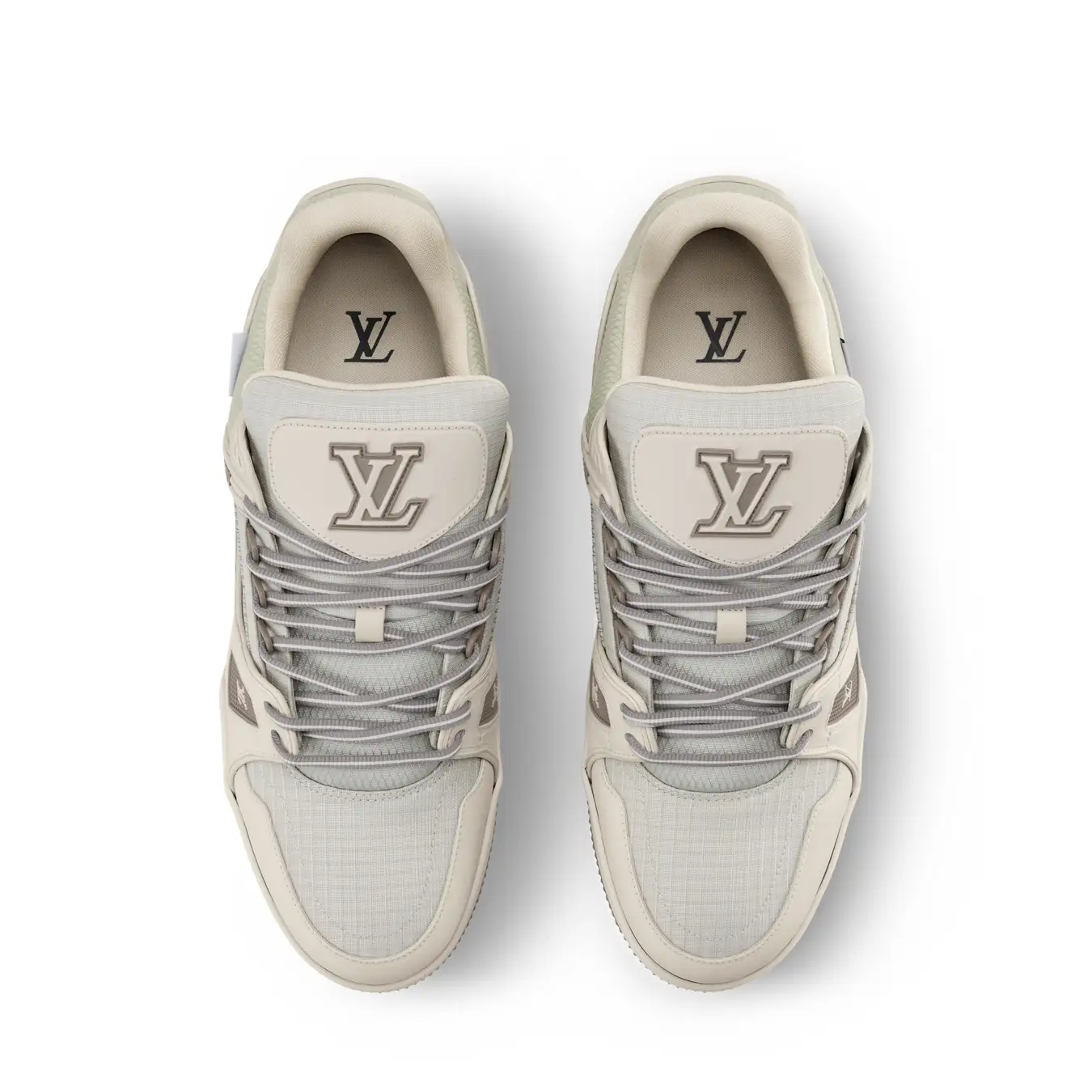 テクニカル素材を組み合わせた防水仕様の「LV トレイナー スニーカー」。ヴィンテージのバスケットボールシューズから着想を得たこの精緻な構造は、最長4時間かけて仕上げられています。アッパーにあしらわれたラバー製のLV イニシャルや「Vuitton」シグネチャーがアクセントをプラス。