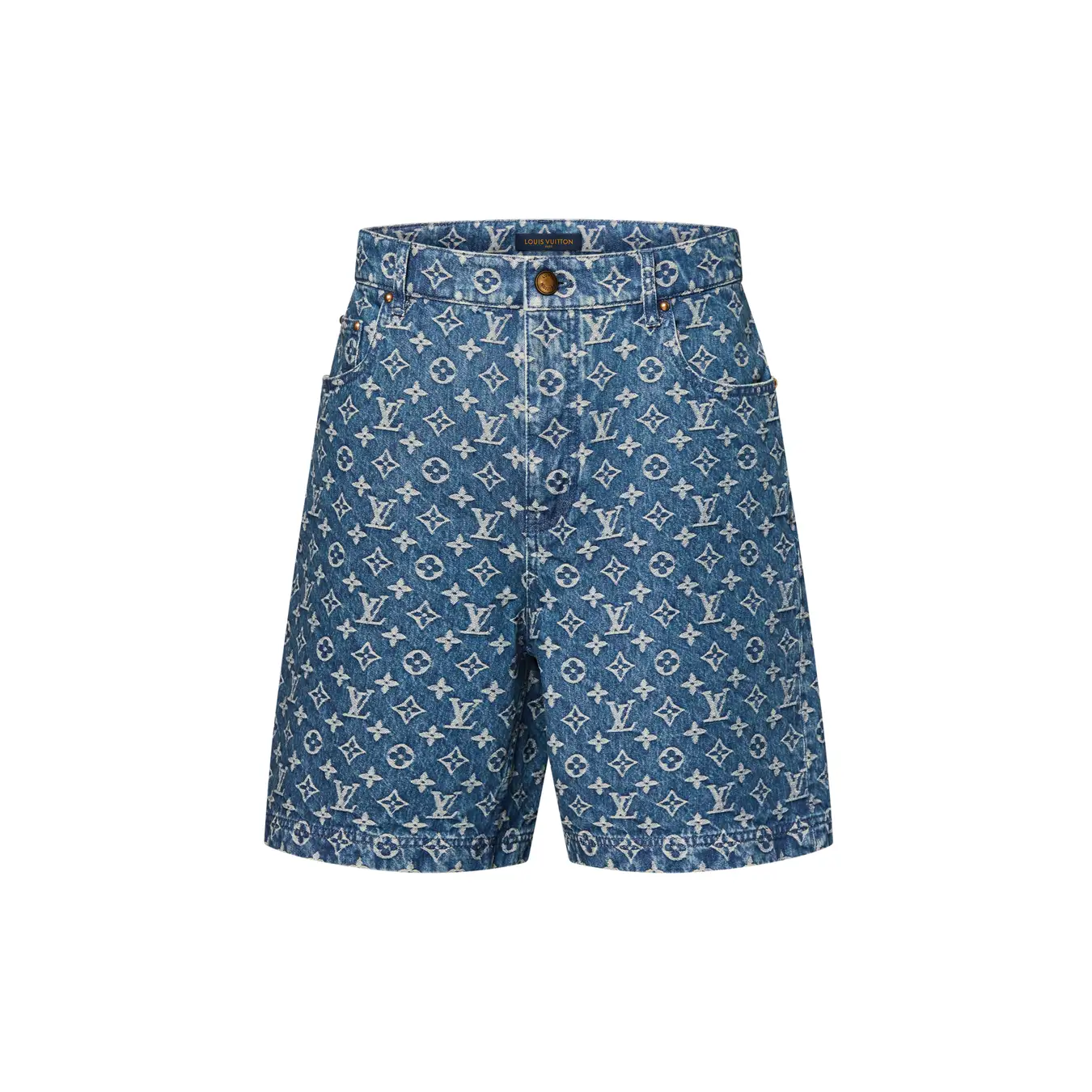 フレッシュかつグラフィカルなシグネチャースタイルが際立つデニムショーツ。 ミディアムブルーのインディゴ生地には、同系色のモノグラム·ジャカードがあしらわれ、ヌメ革の色合いのレザーを使用したダミエのジャクロンパッチが、メゾンのレザーグッズの世界観をさりげなく想起させます。カジュアルな装いにもミックス&マッチしやすく、揃いのシャツと合わせてセットアップとしても楽しめます。