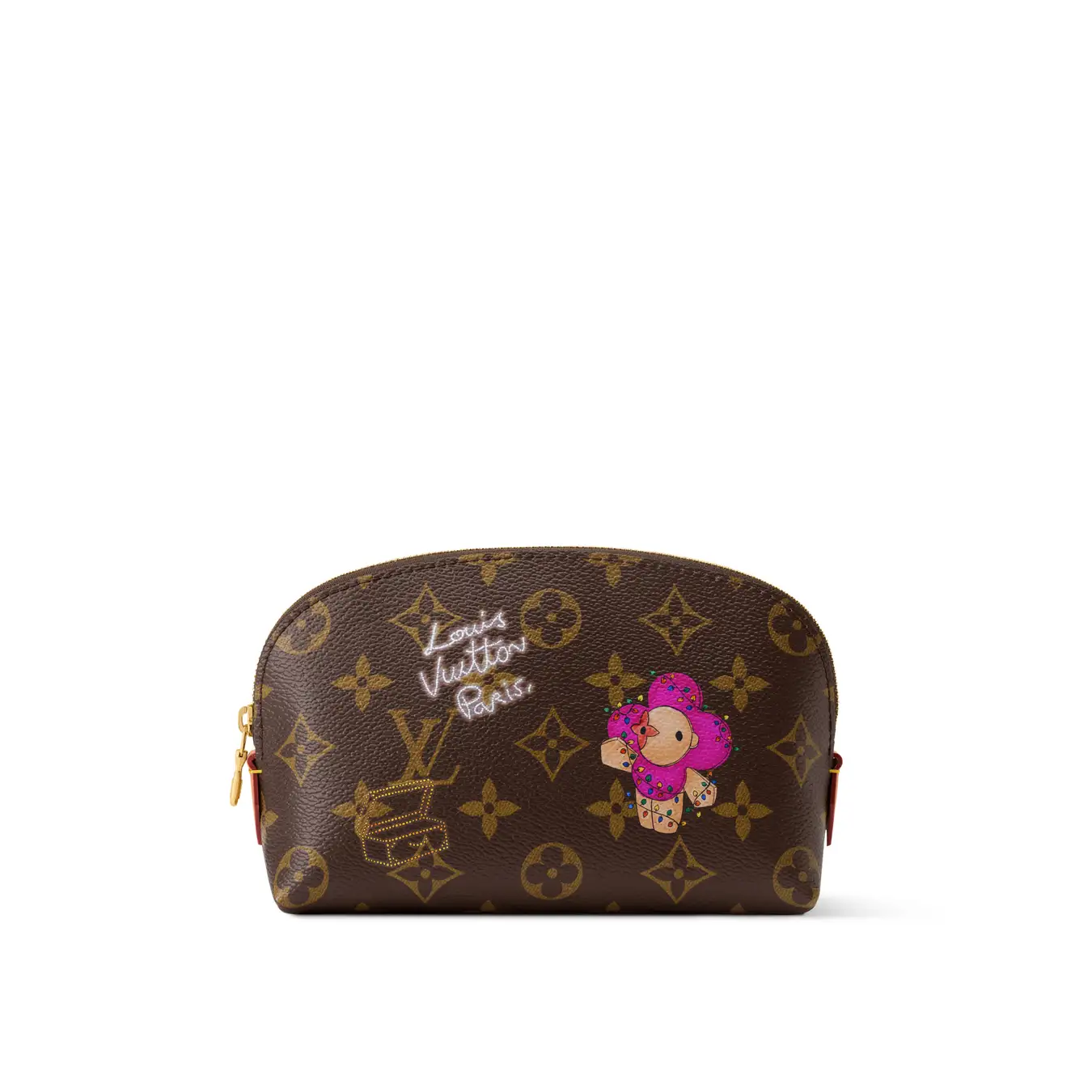 メイク道具やその他の化粧品類の収納に最適な、モノグラム·キャンバスの「ポシェット·コスメティック PM」。メゾンのマスコット「ヴィヴィエンヌ」が、フェスティブムードの華やいだシーンに囲まれた様子が描かれたアイテムです。ファスナー開閉と内フラットポケットによりアイテムをすっきりと整理できるデザインで、フューシャカラーの水拭き可能なライニングが実用性と鮮やかなアクセントをプラス。