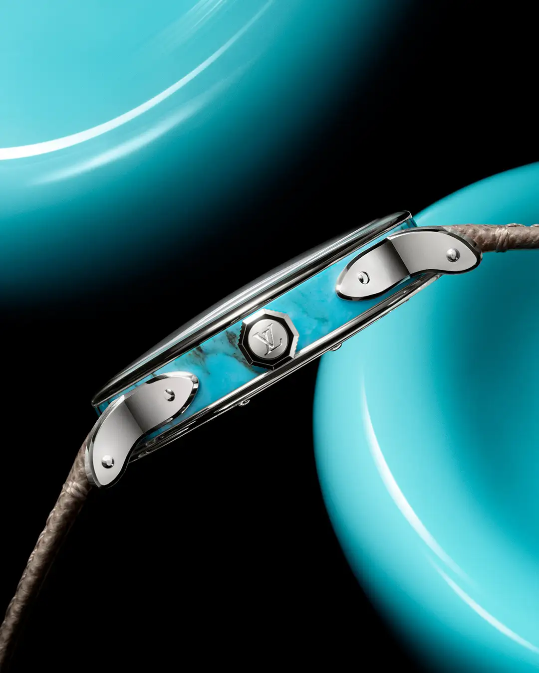 「ラ·ファブリク·デュ·タン ルイ·ヴィトン」のアーティスティック·ディレクター マチュー·エジは、20世紀後半に作られたドレスウォッチと、その革新的な装飾石ダイアルの使用方法がいかにしてその当時のウォッチメイキングの象徴となったかにインスパイアされました。「エスカル」の新作で用いられている素材が持つ生来の魅力について、エジはこう述べています。「このコレクションの本質的な調和は、石の選択に潜んでいる。筋の入り方も、反射の仕方も、美を真に生み出す内部構造全体がユニークな個性を持っている。1つ1つに価値をもたらしているのは、自然が生み出した唯一無二の存在であることを体現している点。私たちは常に美を追求しながら、大胆な発想を持つメゾンのために仕事ができるという特権に恵まれている。美はとりわけ、自然が私たちに与えてくれるもの。私たちはそうした美にただ焦点を合わせるだけ」。
