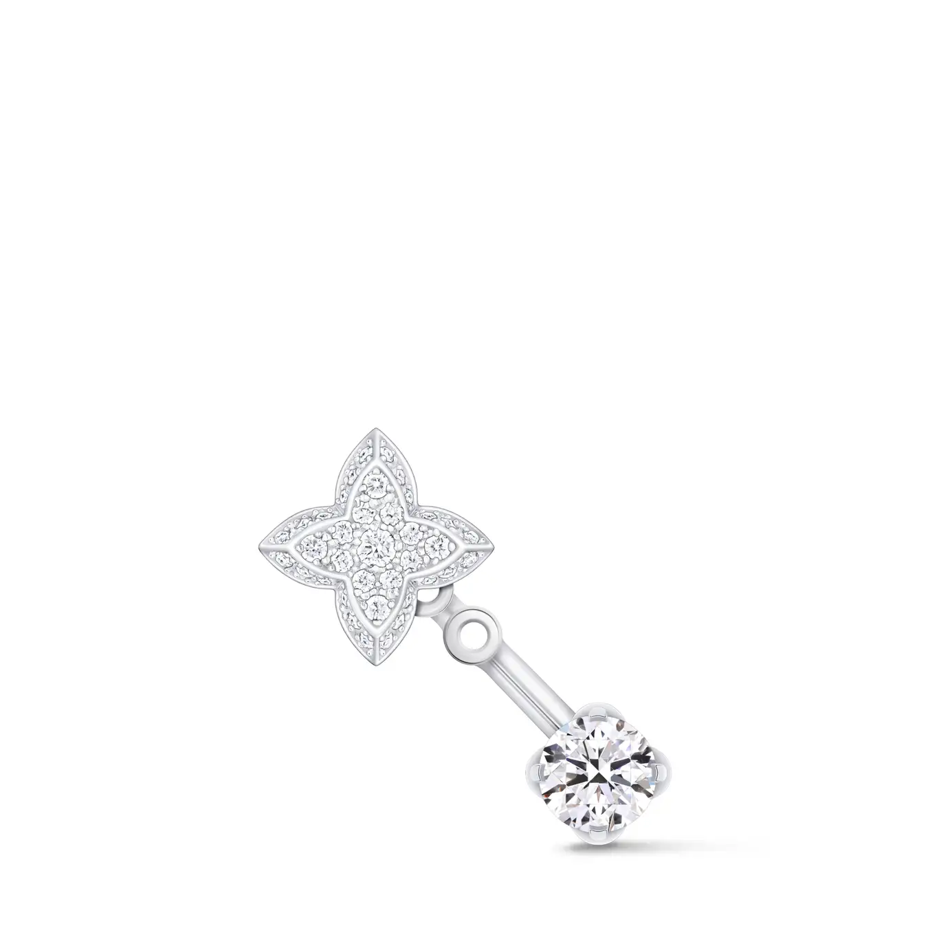 また、メゾンのファインジュエリー·コレクションより、ダブルスタッドピアス「LV ダイヤモンド」とイヤーカフ「オンブレ ブロッサム」も着用しました。