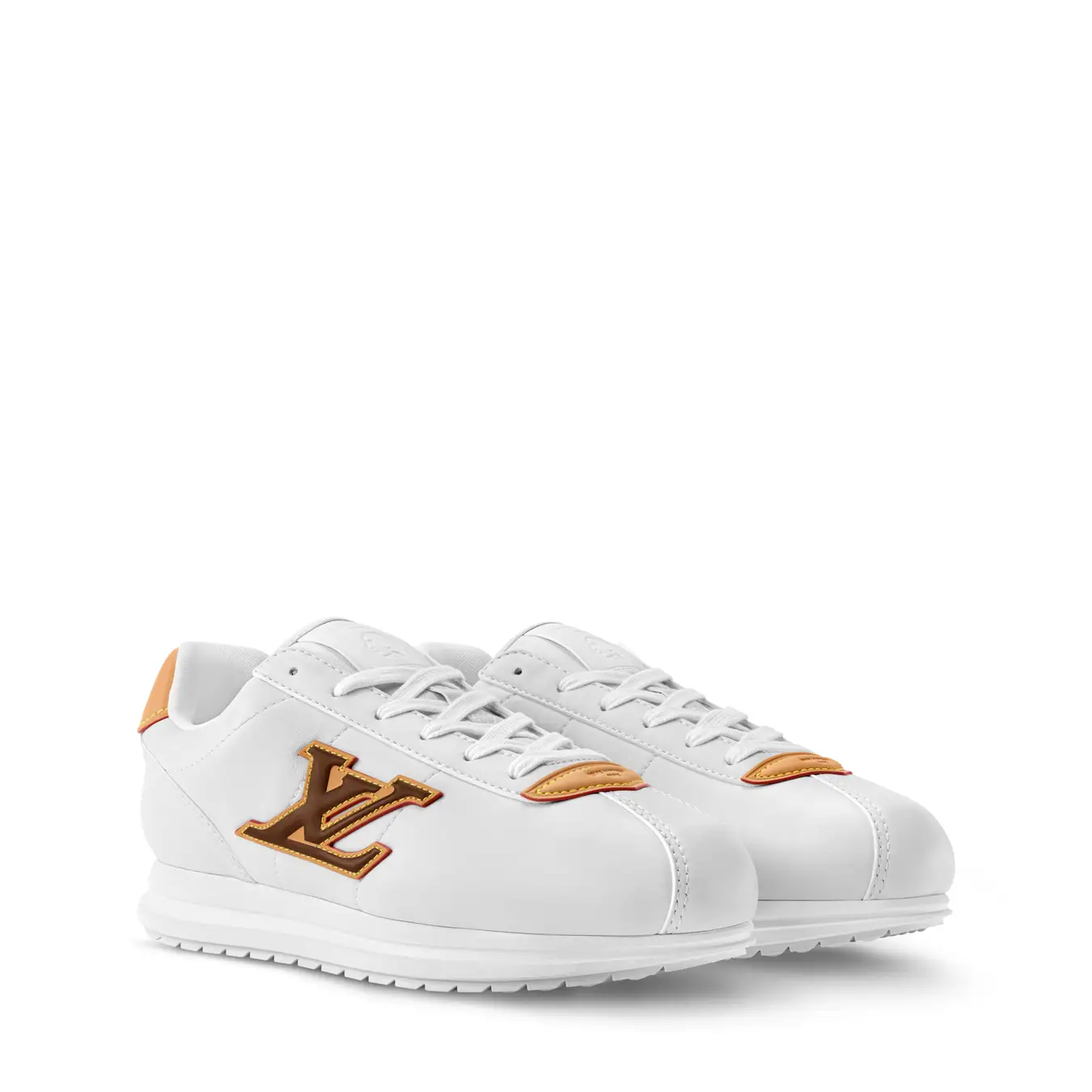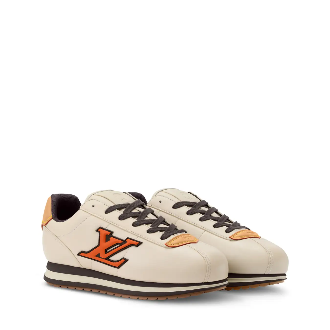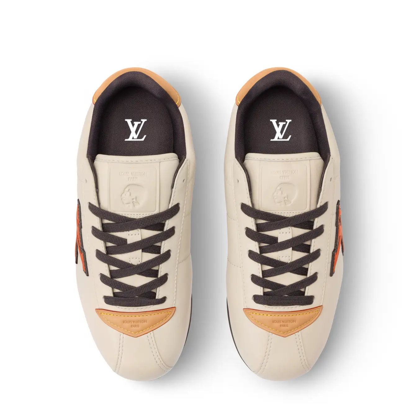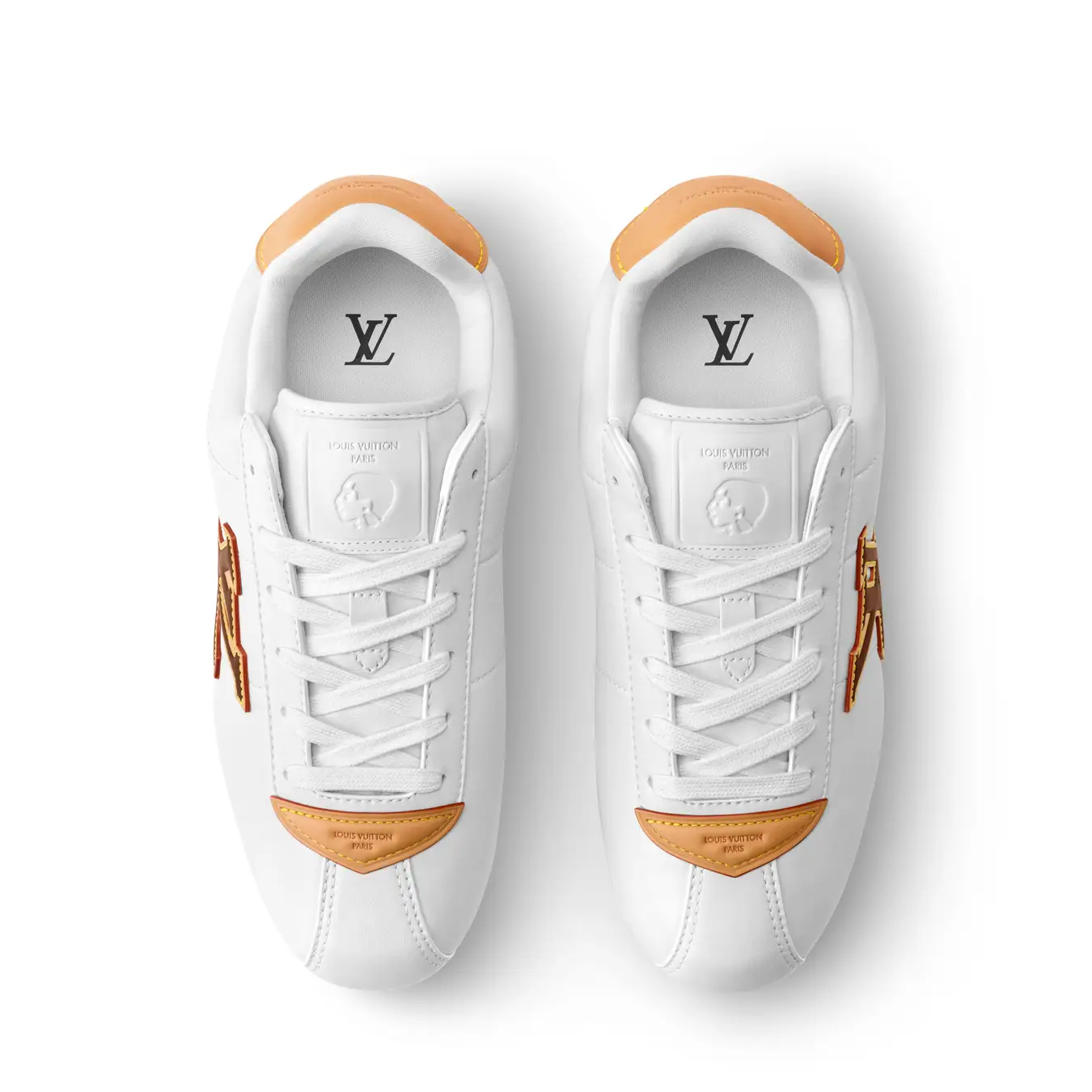 スニーカーが初めてファッションアイテムとなった1960年代から着想を得て、しなやかなラムレザーとカーフレザーのユニークなコンビネーションでスニーカーの快適さとフォーマルシューズのクラフツマンシップを融合させた1足です。メゾンが誇るイタリア人アルチザンたちの技術によってクッション性の高いアッパーを作り上げ、ルイ·ヴィトンを象徴するヌメ革のトリミングとLV イニシャルのシグネチャーをあしらい、シュータンにはメンズ クリエイティブ·ディレクター ファレル·ウィリアムスの横顔が配されています。