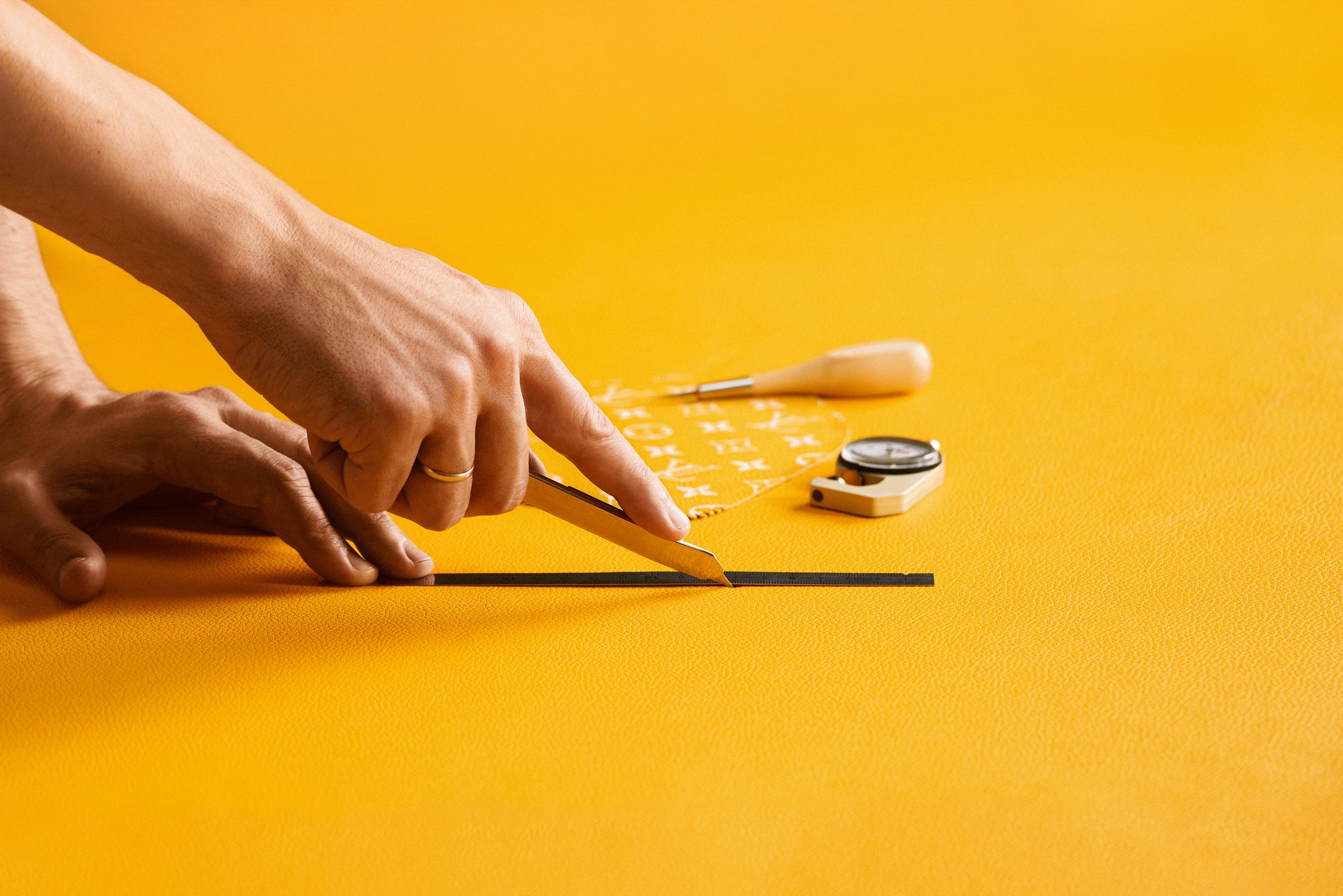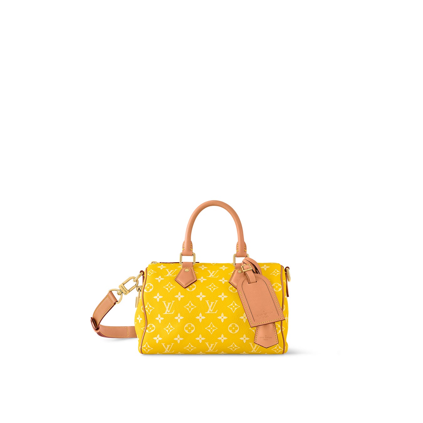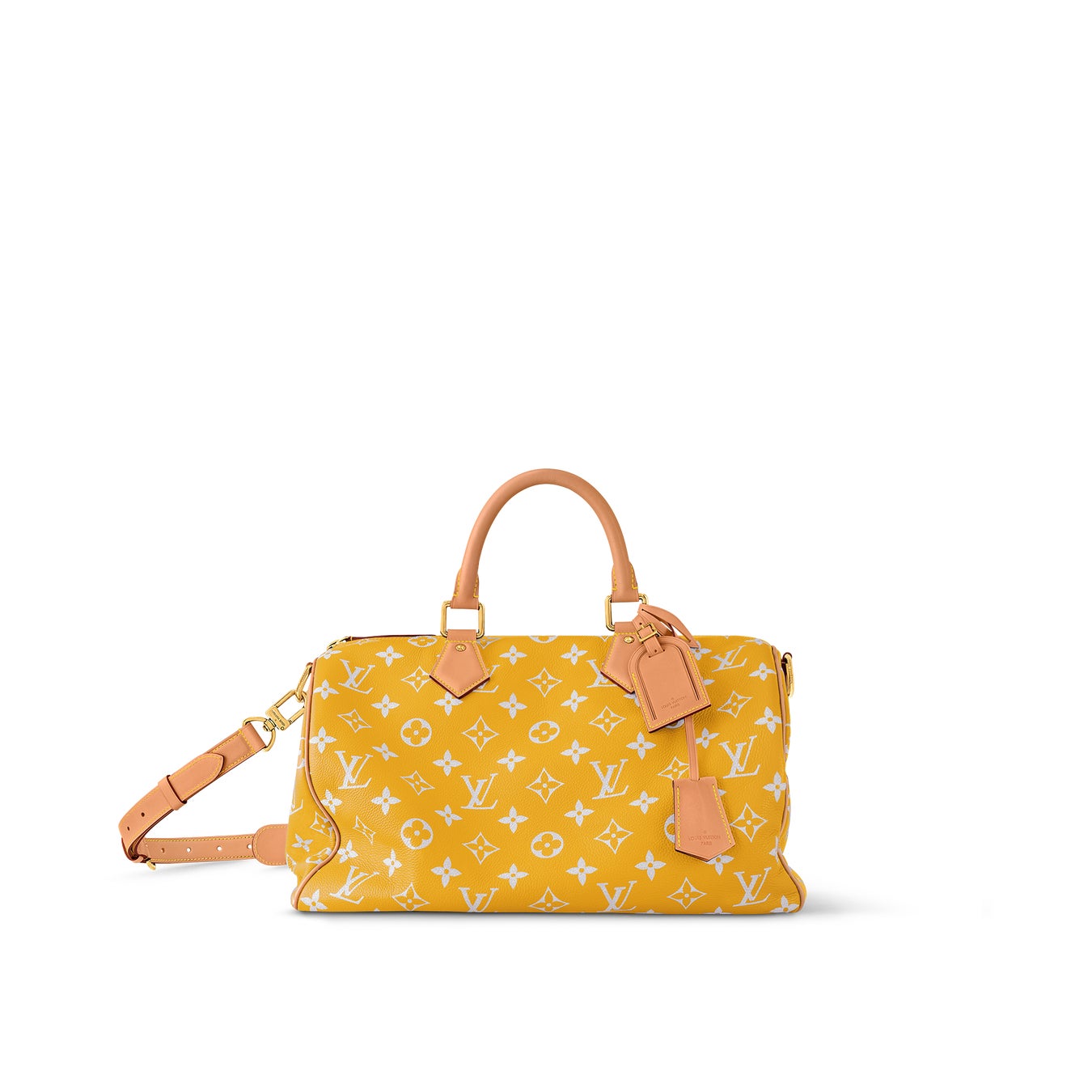 鮮やかなレザーにモノグラム・パターンを高精度のシルクスクリーンプリントの技法であしらい、モノグラム・キャンバスのやや掠れたような表情までもを完璧に再現した「スピーディ P9 バンドリエール」は、艶やかなゴールドカラーのメタルパーツからラムレザーのライニング、バッグ内側に配したエクスクルーシブなプレートまで、ファレル・ウィリアムスならではのディテールへのこだわりが細部にまで感じられるデザインです。