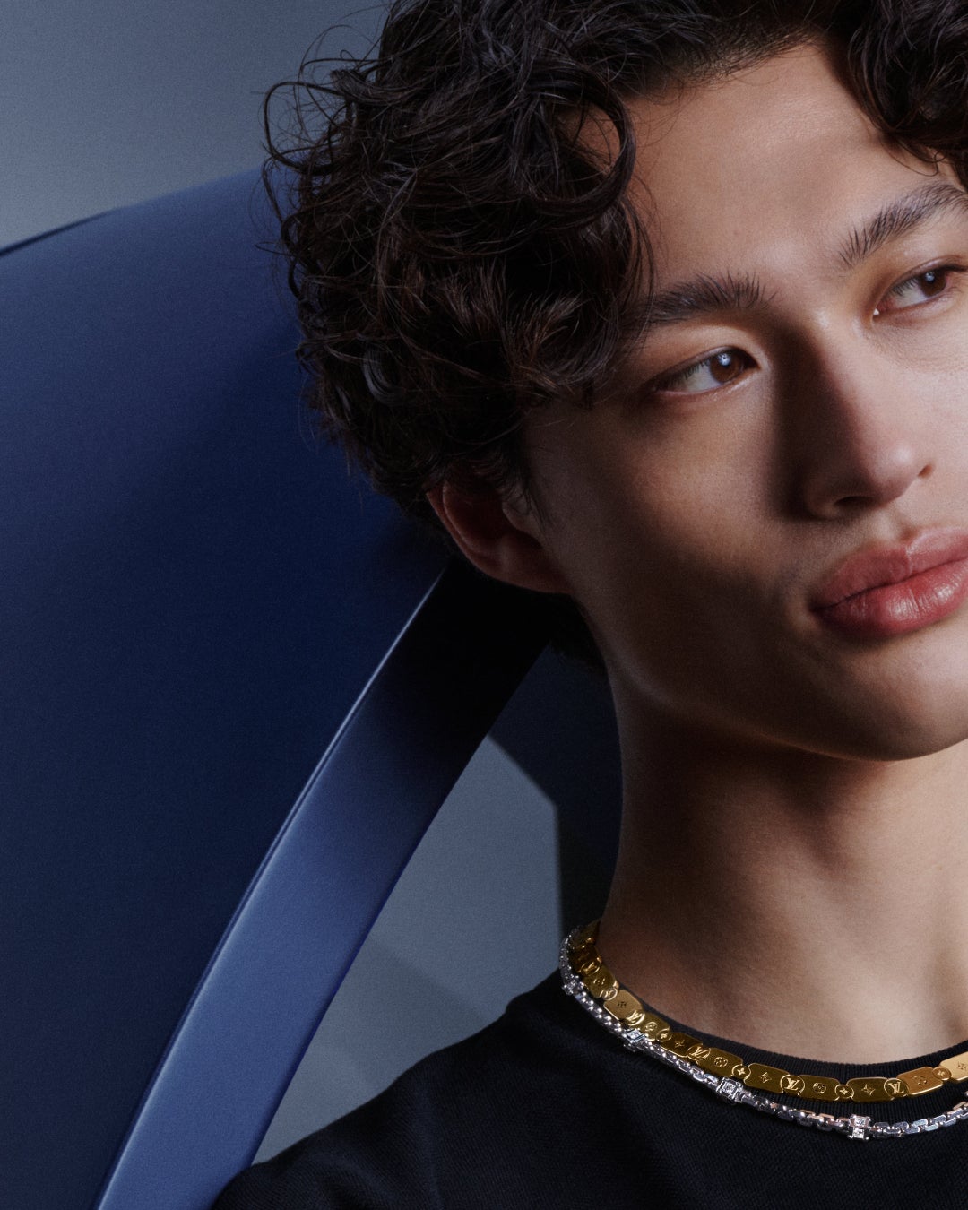 このチャプターでは、そんな彼の一面を「グルメット」で表現。チェーンのアイディアをソリッドでエレガント、モダンなデザインへと再解釈しています。コンテンポラリーであらゆる装いにマッチするタグは、アイデンティティの証であるメゾンのモノグラム・モチーフや新たなチタンブルーが特徴です。