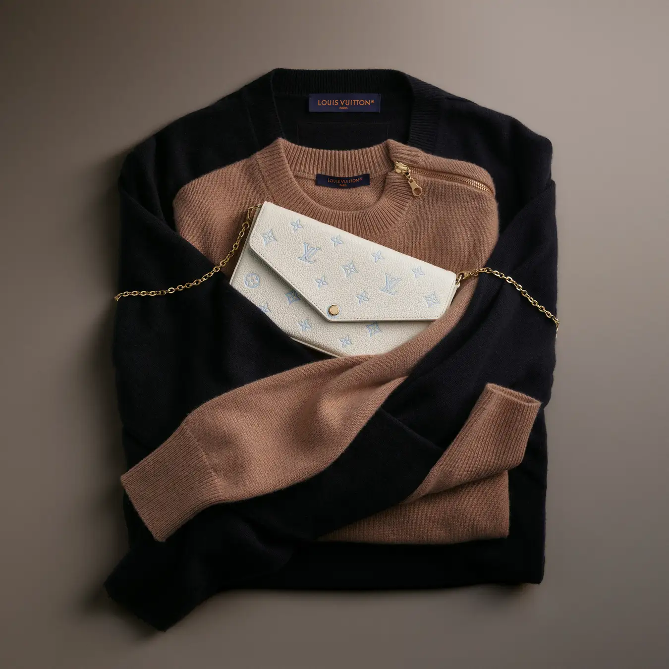 「スウィート·エスケープ」コレクションから登場し、ミルキーホワイトとブルーのバイカラーの色合いで再解釈された「ポシェット·フェリシー」。メゾンを象徴するモノグラム·アンプラント レザーで仕上げ、2つの取外し可能なポケットを備えています。1つはファスナー付き、もう1つには8つのカードスロットが付いています。エレガントなゴールドカラーのチェーンにより、多彩な持ち方を楽しめる一品。