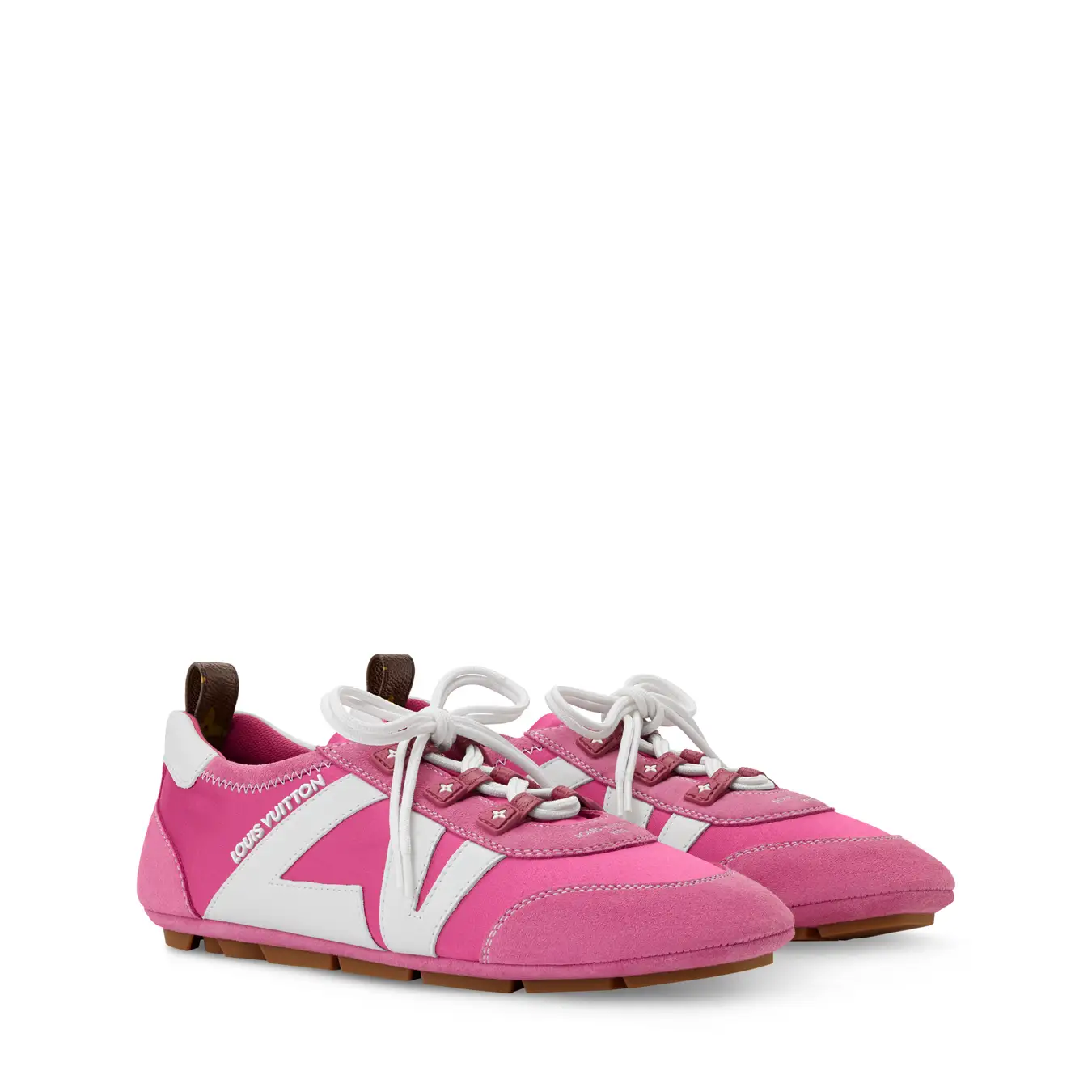 テクニカルサテンにスエードレザーを組み合わせた「LV スニーカリーナ」。スニーカーの機能性とバレリーナのそれぞれの魅力を融合させた、トレンド感溢れる一足です。サケット構造を取入れることで、軽やかさと柔軟性を実現しました。シューレースのループにあしらわれたモノグラム·フラワーや、サイドを彩るLV イニシャルなどのメゾンならではのシグネチャーが、アッパーを引き立てます。