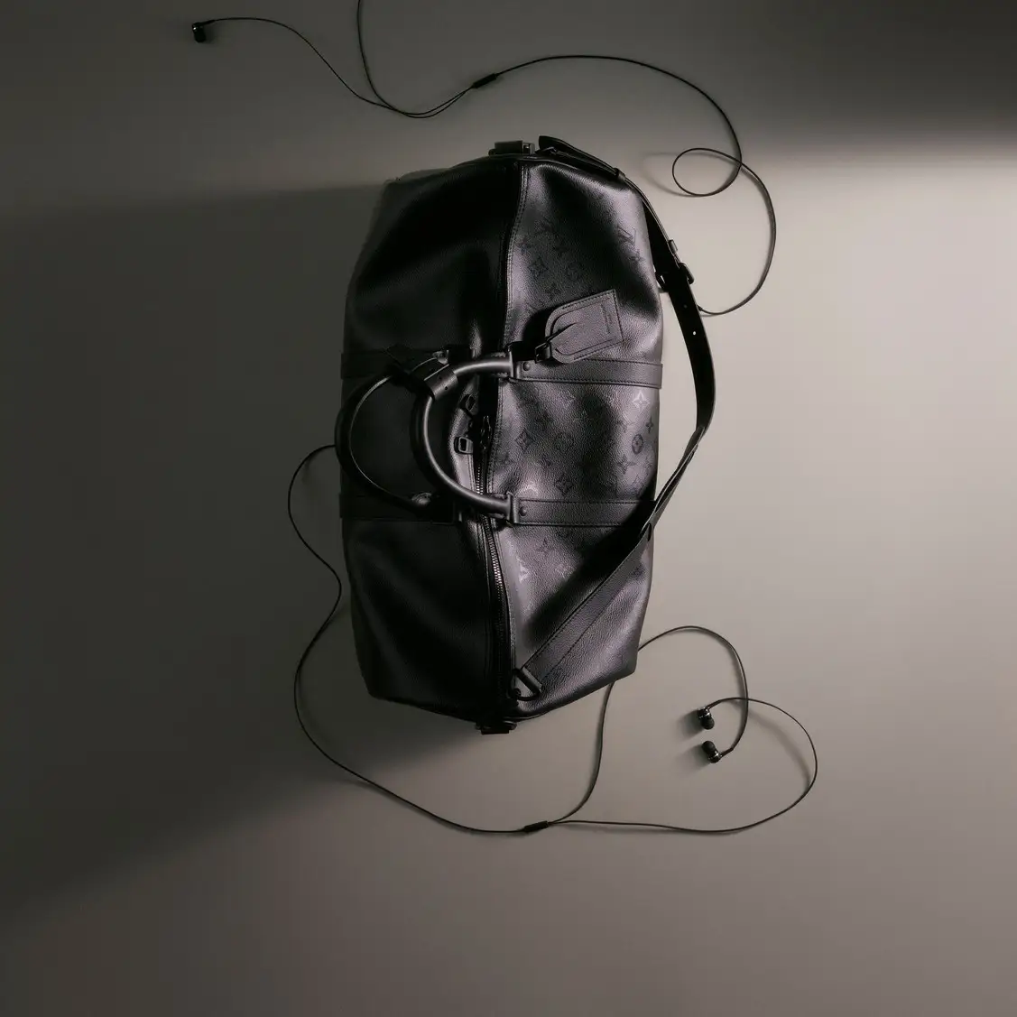 洗練された存在感を放つ、モノグラム·ミッドナイト キャンバスの「キーポル·バンドリエール 25」。
