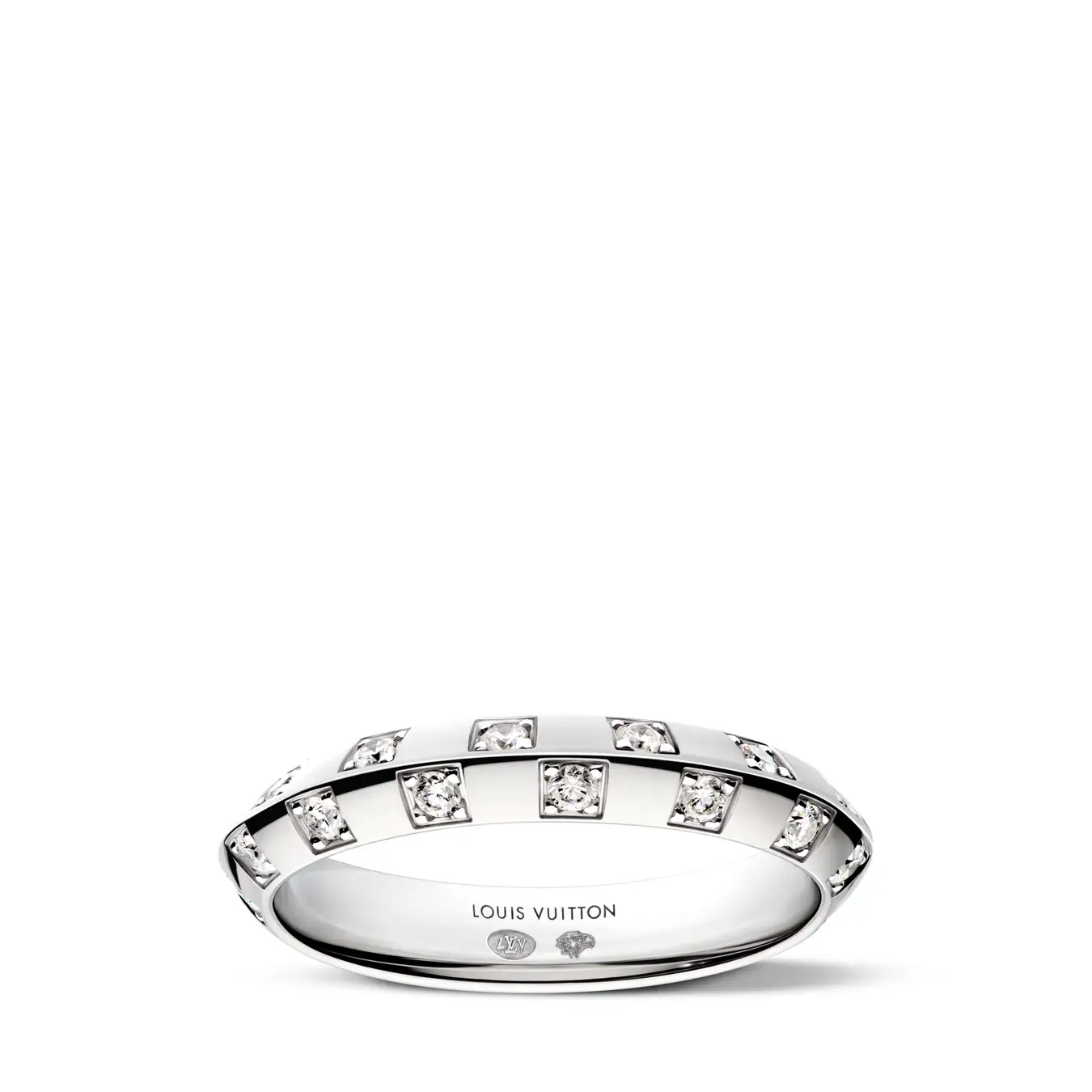 ホワイトゴールドのきらめきとダイヤモンドの輝きが、タイムレスで特別な雰囲気を醸し出す「リング ル ダミエ ドゥ ルイ·ヴィトン 3.5mm」。1888年に考案された伝統的なダミエ·モチーフから着想を得たグラフィカルで現代的なデザインは、独創性と真正性を重んじるメゾンの価値観を表現しています。ジェンダーレスなスタイルはカップルリングとしても最適。毎日身に着けられ、永く楽しめる意義深いファインジュエリーです。