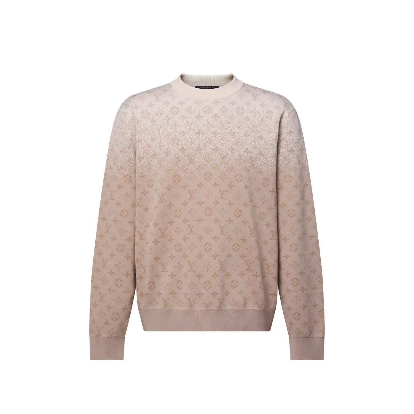 ファインゲージのコットンで仕立てたクルーネック。インドのまばゆい輝く太陽と、伝統的なガーメントダイ技法から着想を得た、洗練されたサンブリーチ加工が特徴です。ベージュの濃淡が移ろうフェイデッド·モノグラム モチーフを、ジャカードニットにトロンプルイユ(騙し絵)のような風合いで全面に織り込み、毎日の装いに軽やかでグラフィカルなシグネチャーアクセントを添えるデザインに仕上げました。