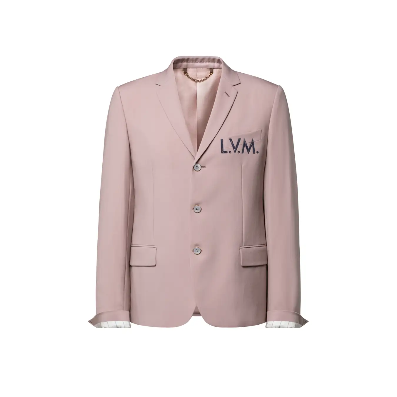 淡いダスティピンクが魅力のシングルブレスト仕様のジャケット。上質な「責任ある調達」によるウールで仕立てられ、胸ポケットにあしらわれたコントラストカラーの「L.V.M.」の刺繍が、モダンでグラフィカルなアクセントを添えています。袖裏にはストライプのライニングを施し、サートリアル(仕立て)ならではのディテールをプラス。揃いのパンツと合わせれば、春の日差しに映える、エレガントなスーツスタイルが完成します。