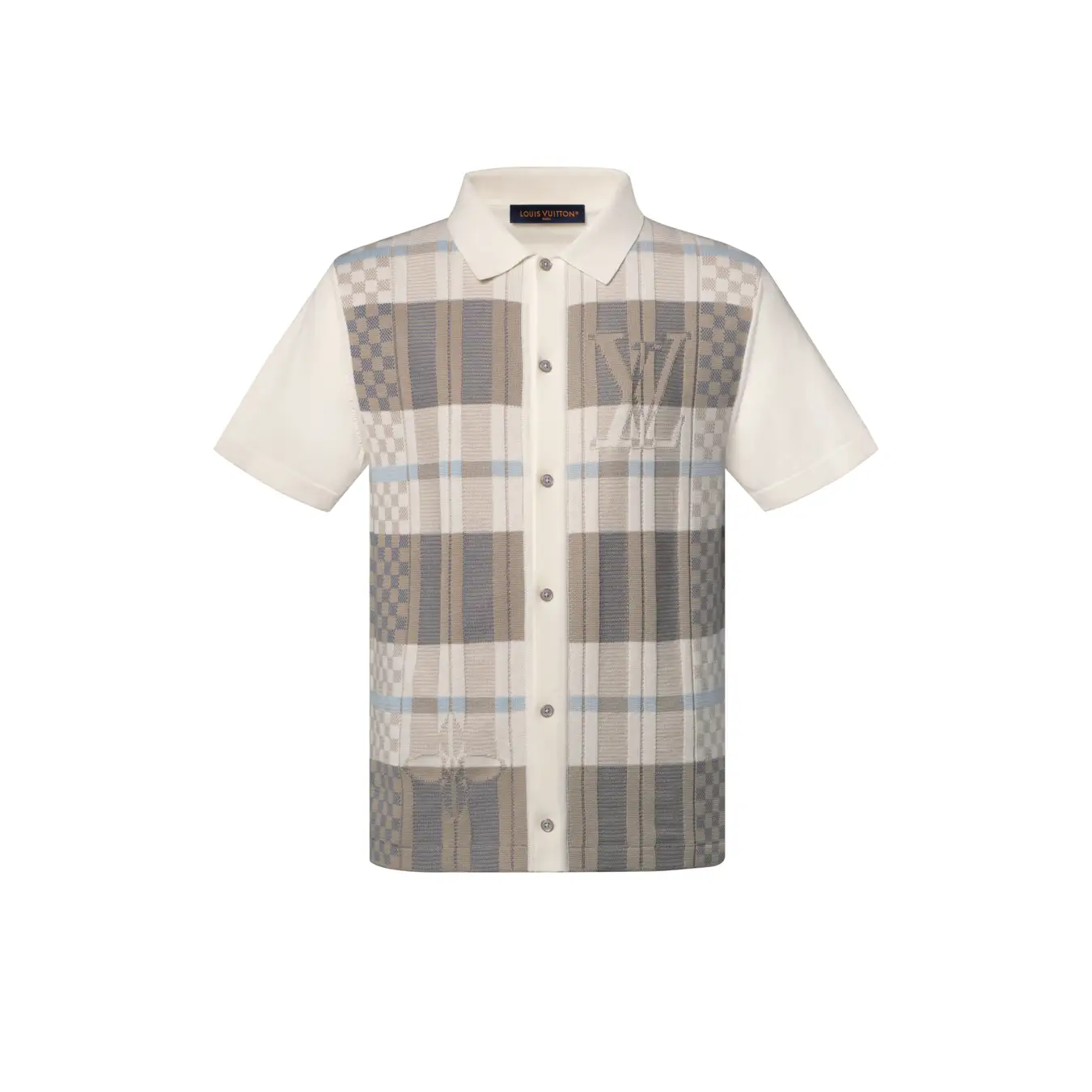 エレガントなベージュトーンで彩られたプレイドジャカードモチーフがフロントを飾る、上質なコットンニットのショートスリーブシャツ。メゾンを象徴するディテールがさりげなくモチーフに溶け込み、ニットのポロシャツスタイルのカラーとマザー·オブ·パール調ボタンが、普段の装いを洗練されたスタイルへと昇華させます。