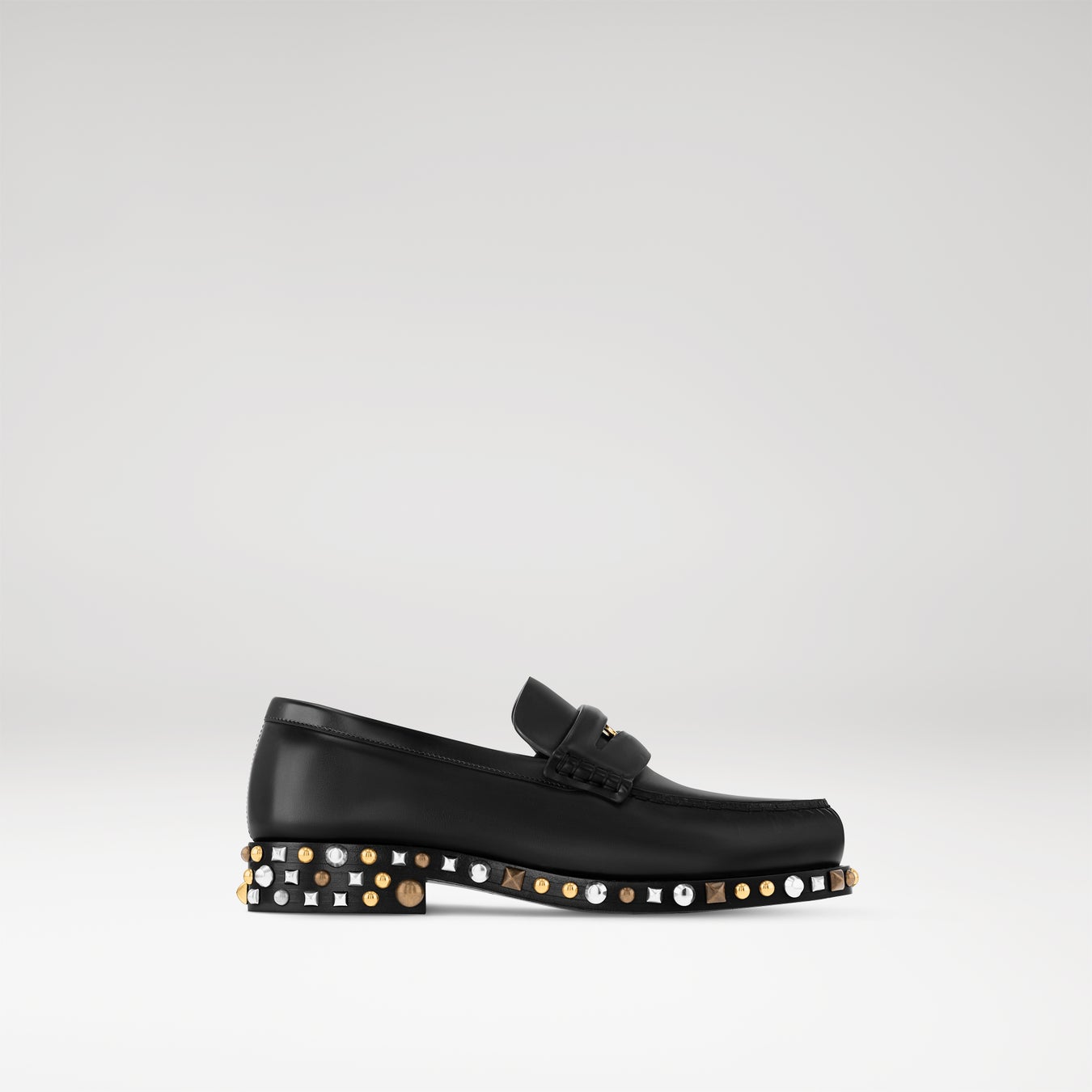 グレーズドカーフレザーのアッパーと、メタルスタッズで装飾を施したレザーアウトソールが魅力の「LV ペニー・ライン ローファー」。公衆電話からいつでも電話できるように、ストラップの下にコインを忍ばせていたことから誕生したペニーローファーを彷彿させる、ルイ・ヴィトンのペニーアクセサリーが特徴のデザインです。