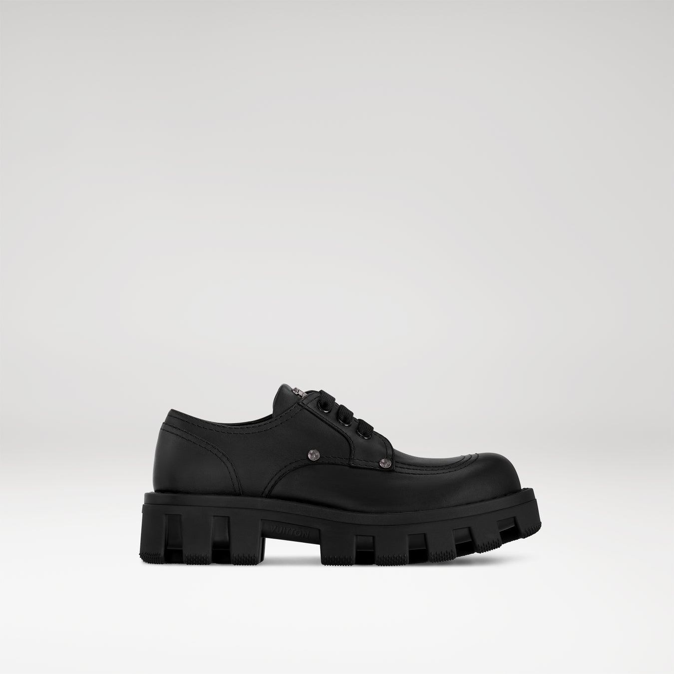 2024春夏メンズ・ファッションショーで登場したハイブリッドスタイルを、ファッショナブルに仕上げた「LV チェッカー・ライン ダービー」。スムースカーフレザーでアップデートし、刻印入りのシルバーカラーのスタッズをあしらいました。ワークウェアから着想を得たチャンキーなラバーアウトソールは、ルイ・ヴィトンのシグネチャーであるダミエ・パターンが施されたトレッドが特徴です。