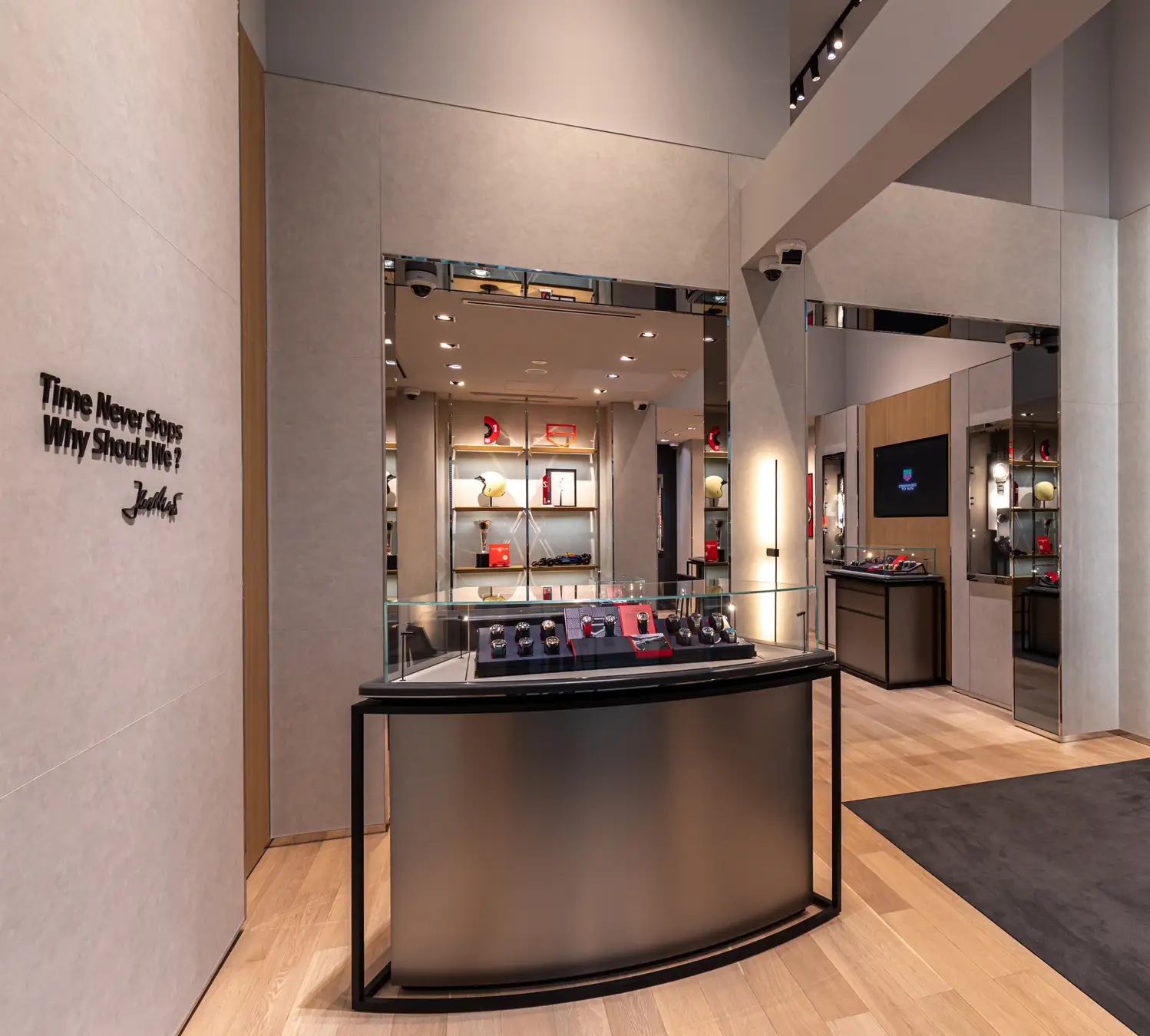 本ブティックでは、2025年末より刷新されたタグ・ホイヤーのストアコンセプトを採用し、最新コレクションや限定モデルに加え、アイコンコレクションである「タグ・ホイヤー カレラ」や「モナコ」、「アクアレーサー」、そして今年10月にリニューアルした「TAG Heuer Connected Calibre E5」など、多彩なタイムピースを取り揃えています。