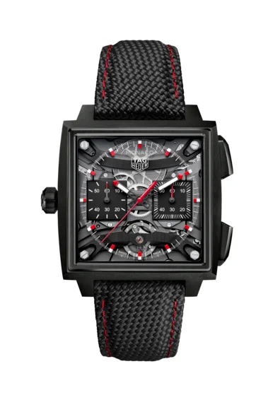 1969年に初代「キャリバー11」で確立されたシグネチャーである左側のリューズに加え、新たに採用された細長いプッシュボタンが特徴のこのモデルでは、人間工学を指針としてデザインを一新させた40 mmのグレード5チタン製ケースが目を引きます。角型のサファイアケースバックは、腕元への装着感を新たな次元へと高めることに貢献しながら、「タグ・ホイヤー モナコ」のケースに絶妙にフィットするよう開発された角型ムーブメントを余すところなく堪能することを可能にしています。