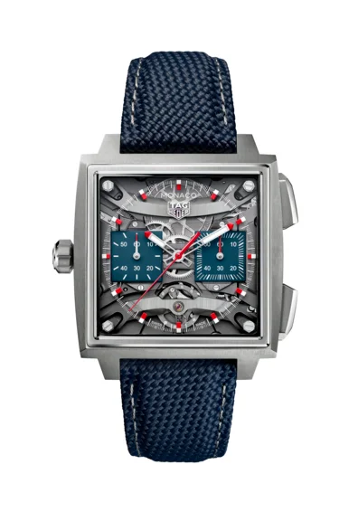 この「タグ・ホイヤー モナコ エバーグラフ」は、メゾンの豊かな歴史にオマージュを捧げつつ、現代的な佇まいを持つ2種類のエディションで展開されます。1つ目が、スティーブ・マックイーンが愛用した Ref. 1133B を彷彿とさせる、ブルーアクセントのチタン製モデル。そして2つ目が、タグ・ホイヤーのレーシングDNAとシグネチャーのカラーパレットから着想を得た、レッドアクセントが際立つブラックDLCコーティングのチタン製モデルです。
