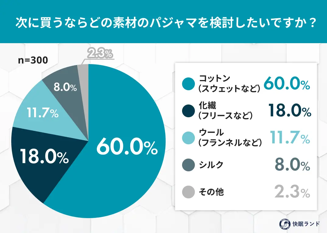 冬に着ているパジャマの素材は「コットン(スウェットなど)」が約6割で最多