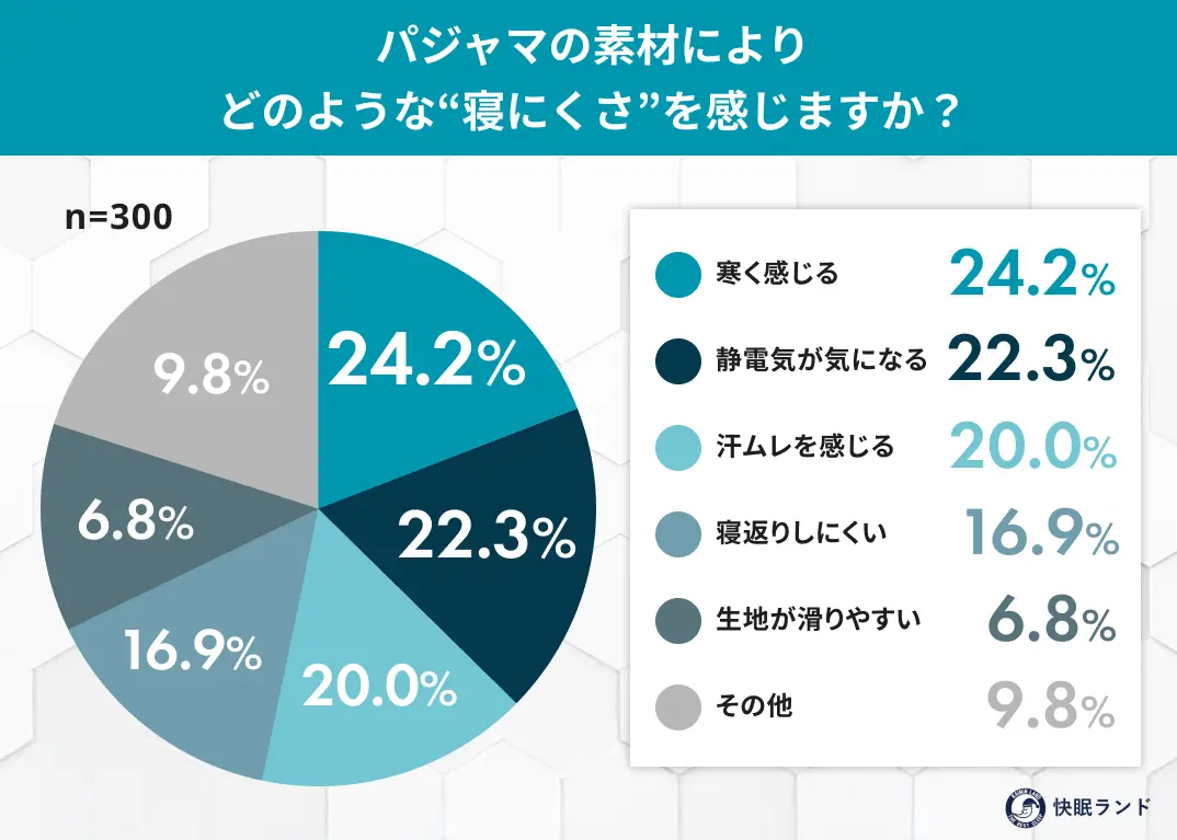 寝にくさの内容は「寒く感じる」「静電気が気になる」「汗ムレ」が中心