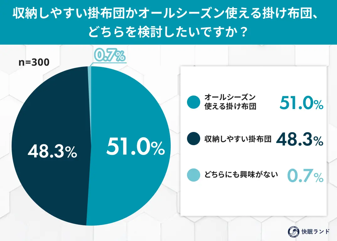 Q5. 収納しやすい掛布団かオールシーズン使える掛け布団、どちらを検討したいですか?