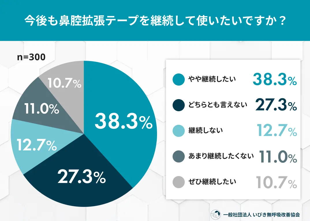 今回の調査により、鼻腔拡張テープは「いびき対策」のみならず、花粉症や風邪に伴う鼻づまり、さらには口呼吸による喉の乾燥を防ぐための多目的アイテムとして活用されていることが明らかになりました。約7割がその効果を認めているものの、実際の利用シーンは「困ったときだけのスポット利用」が多く、離脱層も少なくありません。継続的な利用を促進するためには、強力な粘着力と肌への優しさの両立、そして毎日使い続けやすい価格設定といった、ユーザーのリアルな不満に寄り添った製品の進化が待たれます。