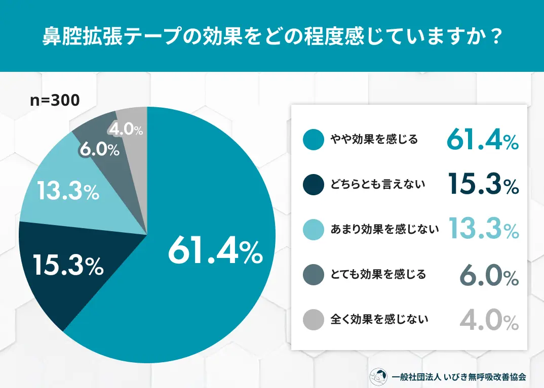 睡眠の質への関心が高まる中、手軽な快眠グッズとして親しまれている「鼻腔拡張テープ(鼻テープ)」。一般社団法人 いびき無呼吸改善協会は、鼻腔拡張テープの使用経験がある300名を対象に利用実態調査を実施しました。その結果、約7割(67.3%)が効果を実感しており、いびき対策のみならず「鼻炎・花粉症」や「喉の乾燥対策」として幅広く活用されている実態が判明。一方で、利用者の4人に1人が「現在は使用していない」と回答しており、継続利用における具体的なハードルも浮き彫りになりました。